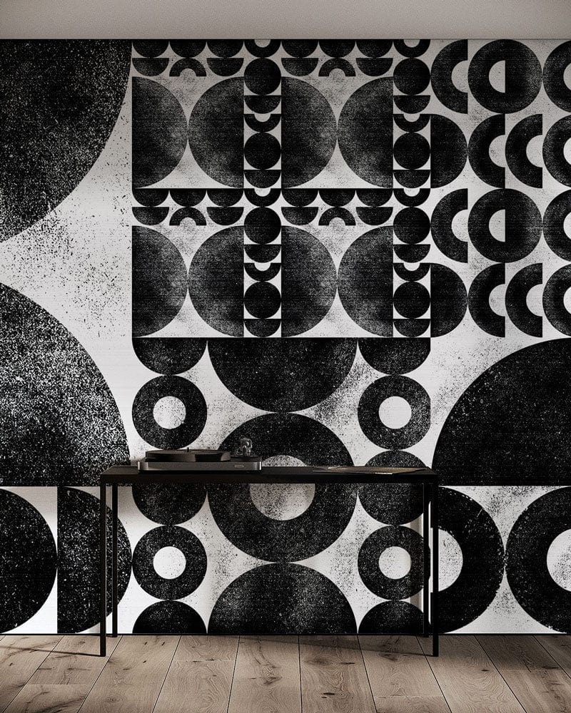 Immerse your interior in the captivating allure of geometric artistry with this Circle Mosaic Mural Wallpaper. The design melds intricate circular patterns with a sophisticated black and white palette, creating a seamless blend of elegance and modernity. Its textured finish adds depth, making it a striking focal point that harmonises effortlessly within diverse spaces.