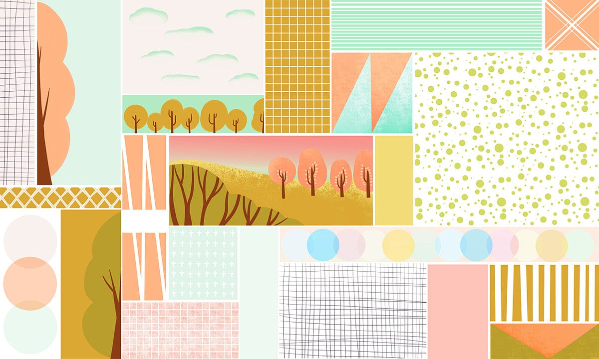Bring your wall to life with this beautiful wallpaper mural. Relieve your stress and enjoy the freshness from the images and design in soft pastel colours. The different styles of geometric colour blocks are powerfully united with the trees, dots and lines yet not too overwhelming. Add a peaceful and calm atmosphere to your living room, bathroom, bedroom and dining hall with this art deco. Work perfectly to your modern style furniture and home decors.