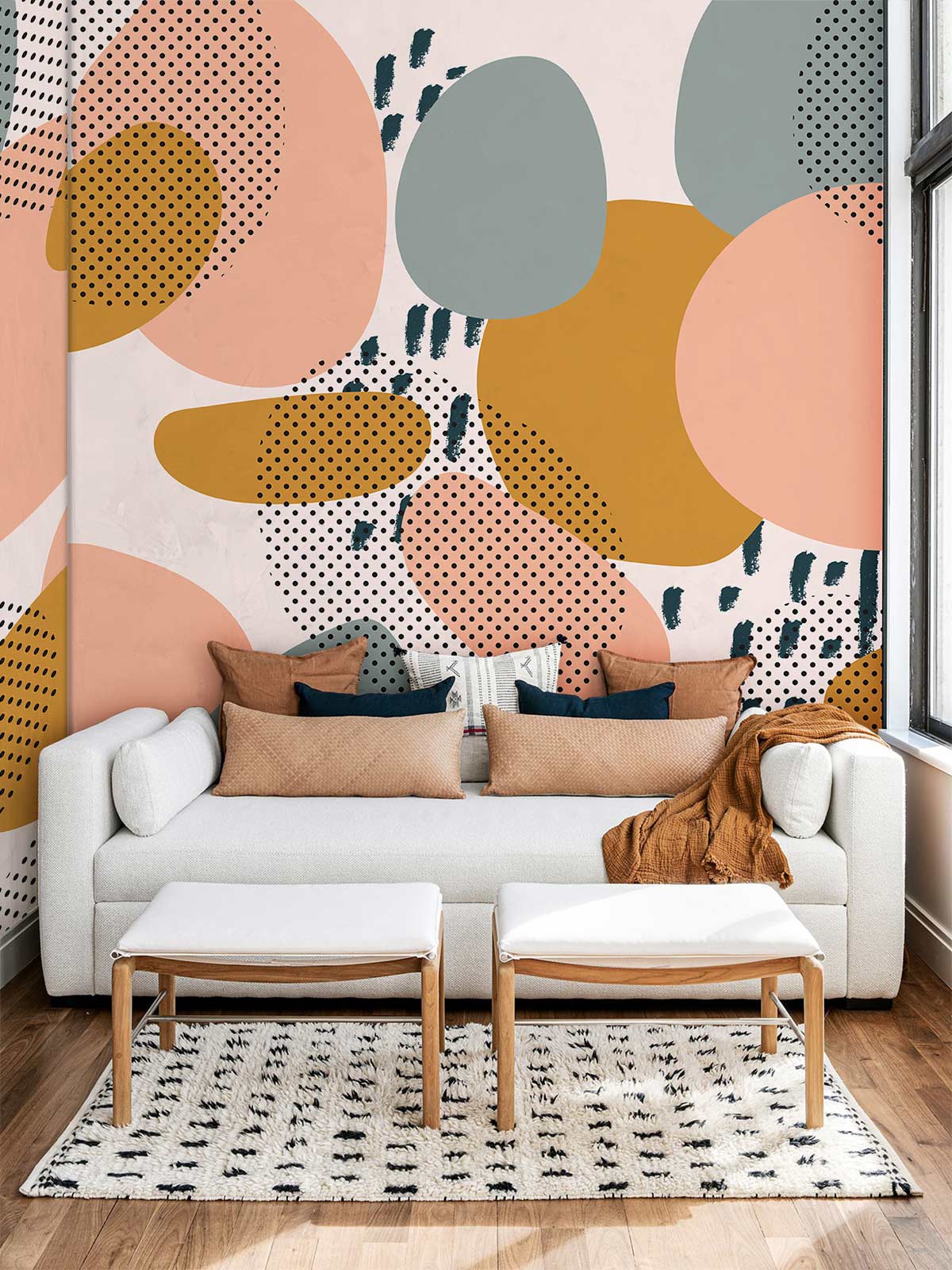 Discover the Geometric Doodles Wallpaper Mural, a sophisticated blend of artistic flair and modern elegance. This captivating design features a harmonious dance of rounded forms in earthy tones, intricately layered with a subtle play of textures. The dynamic arrangement of shapes lends depth and movement, making it a timeless addition to any interior. Suitable for a variety of settings, this mural brings a sense of artistic charm and refined ambience that complements both contemporary and classic décor.