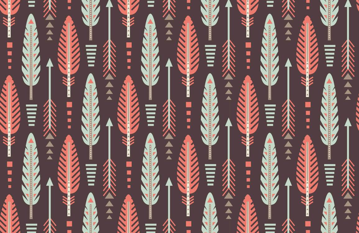 Adorn your wall with this stylish geometric and arrows wallpaper mural.This decorative American Indian style leaf, arrows and geometric elements pattern under dark background will surely add a cool and ethnic style in your space. You can pair it with modern style furniture to make it even more stunning.