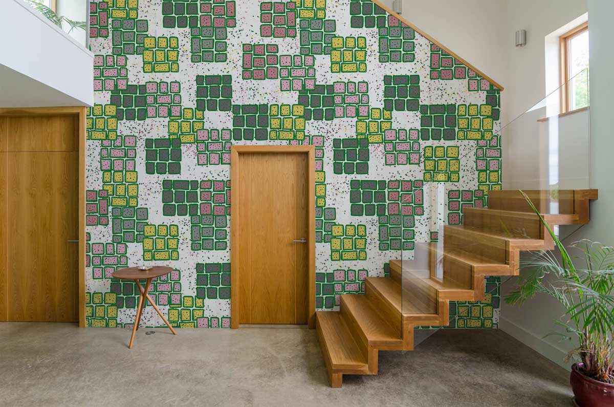 This exquisite geometric pattern wallpaper mural exudes a refined charm, interweaving intricate patterns with a mosaic of vibrant colours. Perfectly balancing artistry and elegance, its vivid hues and textured visuals create a captivating focal point in any space, effortlessly harmonising with both modern and eclectic interiors.
