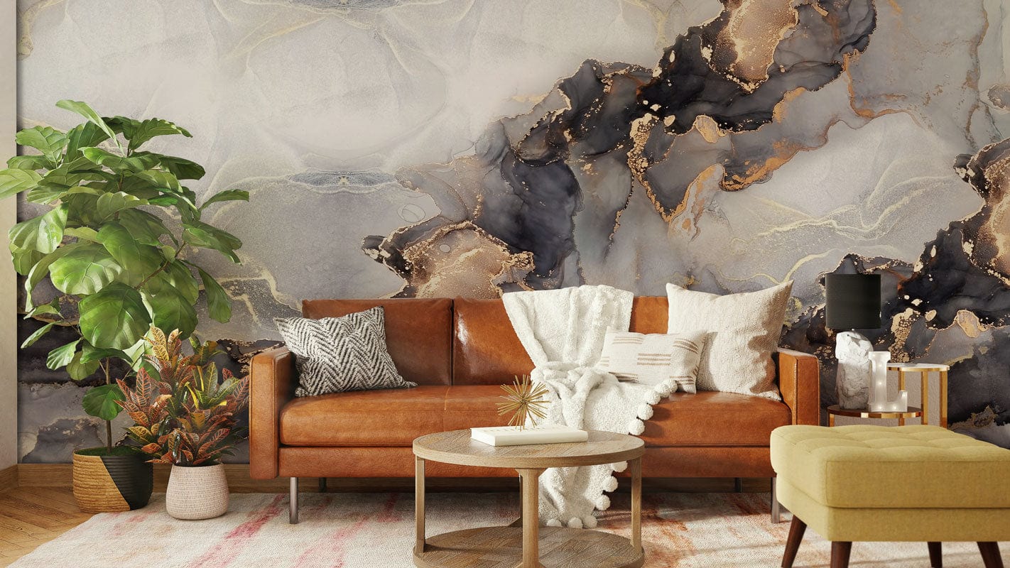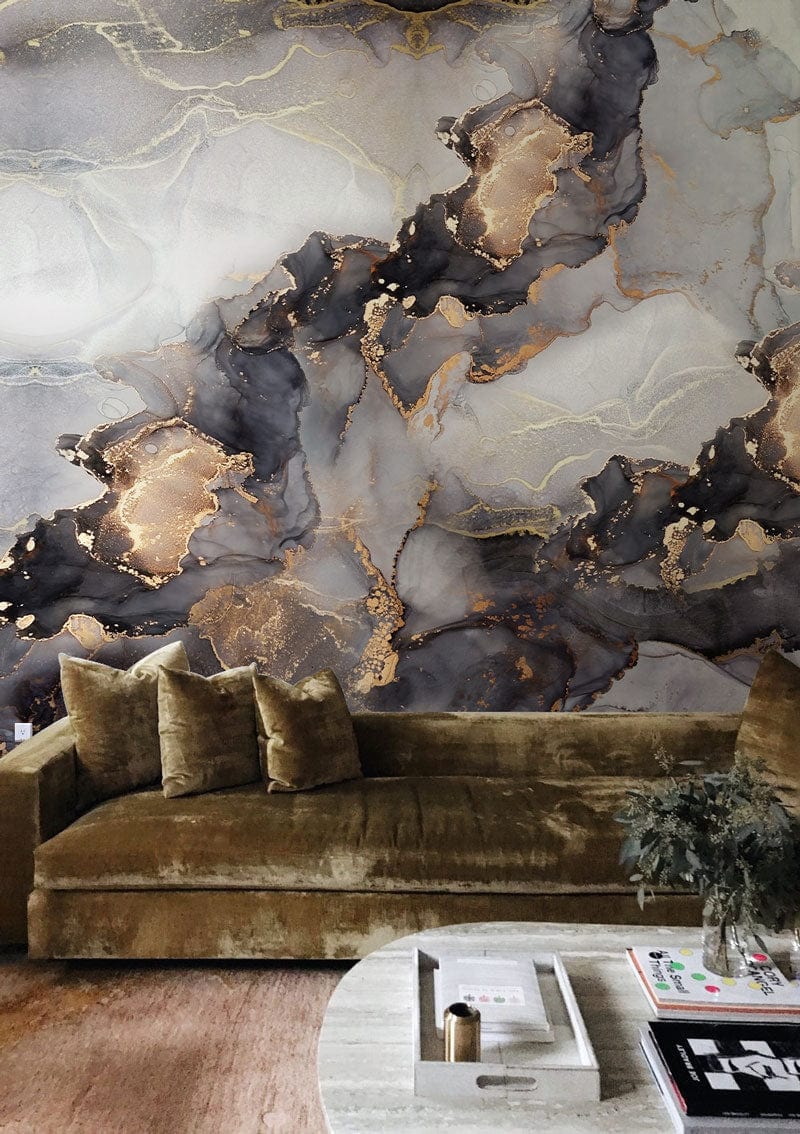 The Gilt Watercolor Marble Wallpaper Mural showcases a sophisticated fusion of swirling patterns and fluid textures, reminiscent of the timeless elegance of marble. Delicate gold veining accentuates the artwork, adding depth and luxury to your space. This mural is an exquisite choice for creating a serene ambience in any setting.