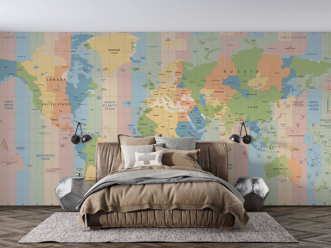 Discover a vast range of beautiful world map wallpaper mural selections from Ever Wallpaper. This stunning world map wall mural is ideal for adding a splash of colour to any place in your bedroom or home office.