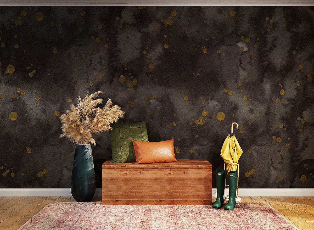 The Gold & Black Dots ll Wallpaper Mural exudes a luxurious allure, combining deep black undertones with lustrous gold accents. Its intricate pattern evokes a sense of fluid elegance and artistic expression, making it a sophisticated choice for any space. The design captures light beautifully, offering an enchanting interplay of shade and sheen, perfect for creating a refined ambience.