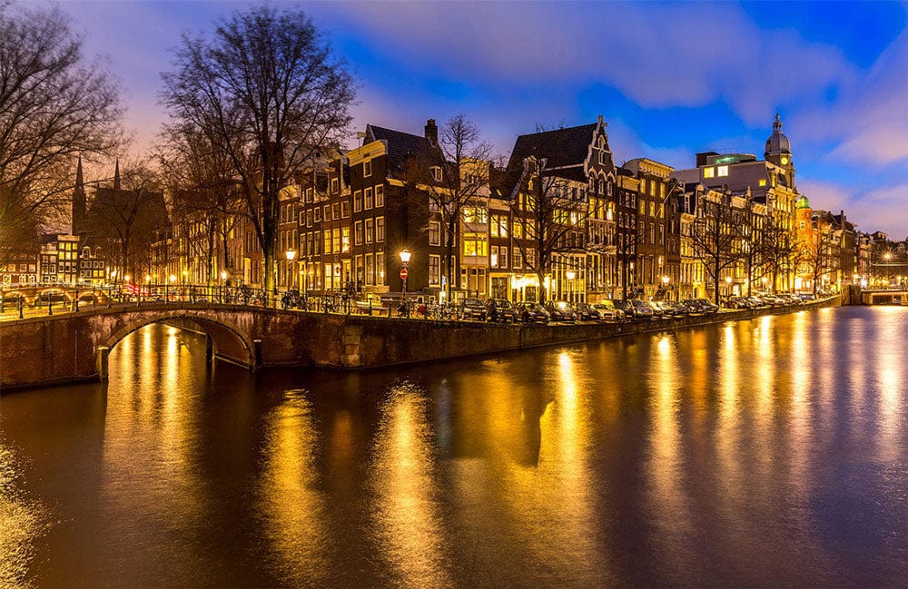 The Golden Amsterdam Wallpaper Mural captures the serene elegance of Amsterdam's iconic canals under a radiant evening sky. Rich in architectural detail, the mural's reflection of golden hues against the water creates an inviting warmth that complements contemporary and classic decors alike. Its sophisticated design introduces a sense of timeless charm to any interior setting.