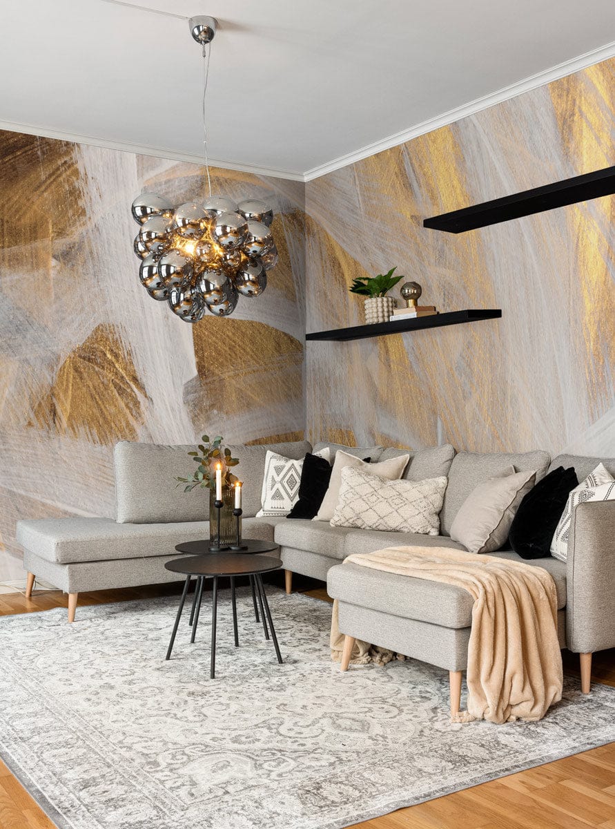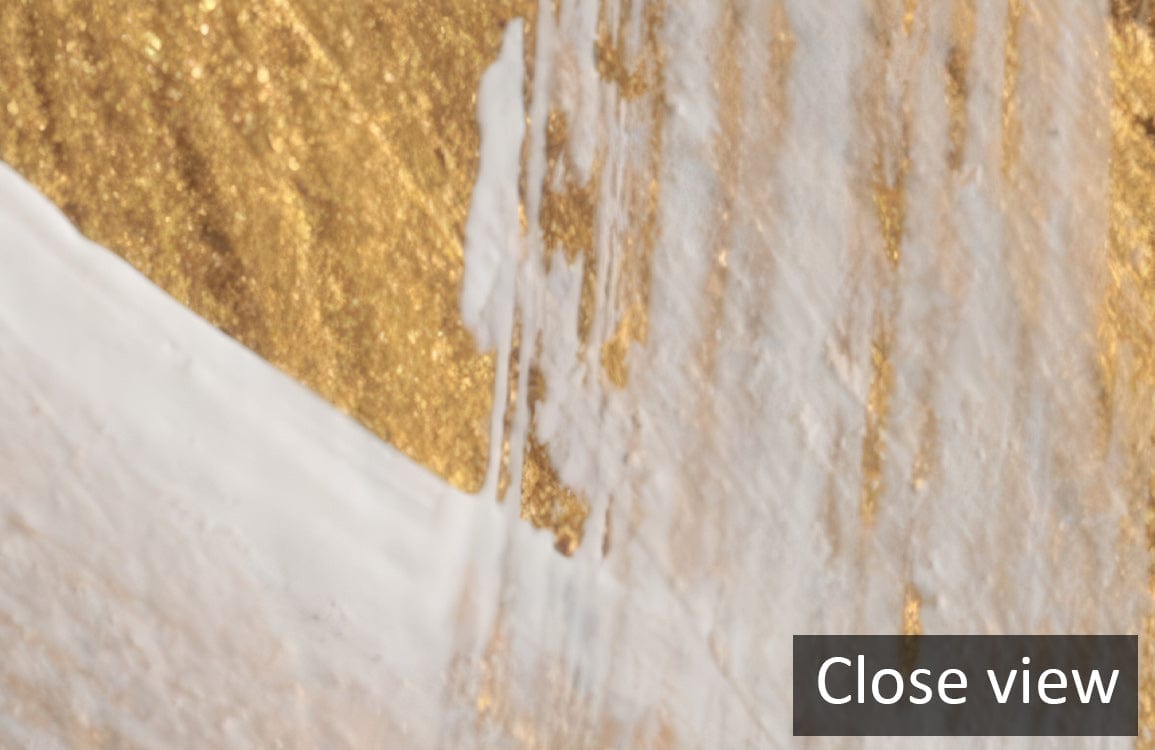 The Golden Brushstroke Mural Wallpaper elegantly captures the essence of sophisticated artistry with its sweeping, abstract design. The interplay of gold and soft white hues creates a serene and luxurious ambience, evoking a timeless allure that harmoniously fits with diverse interior aesthetics. Its textured surface offers a tactile feel that adds depth and dimension to any space, making it a perfect choice for those seeking an artistic touch.