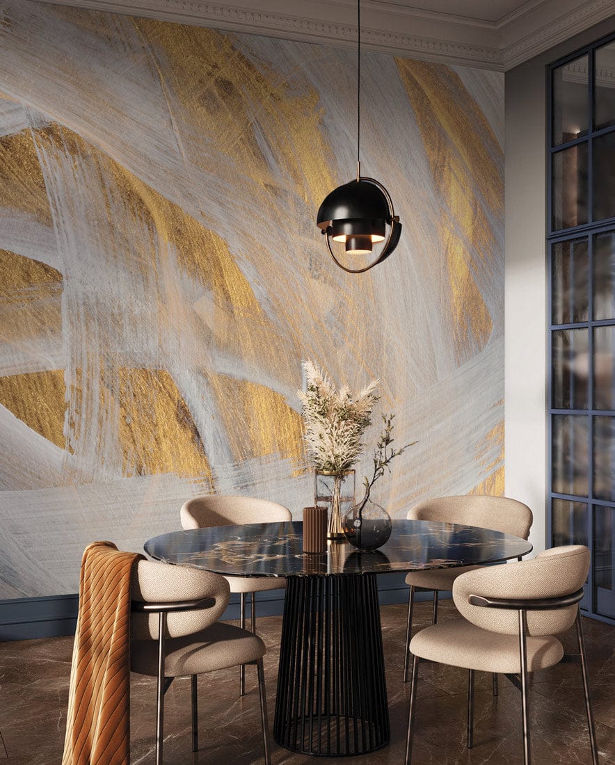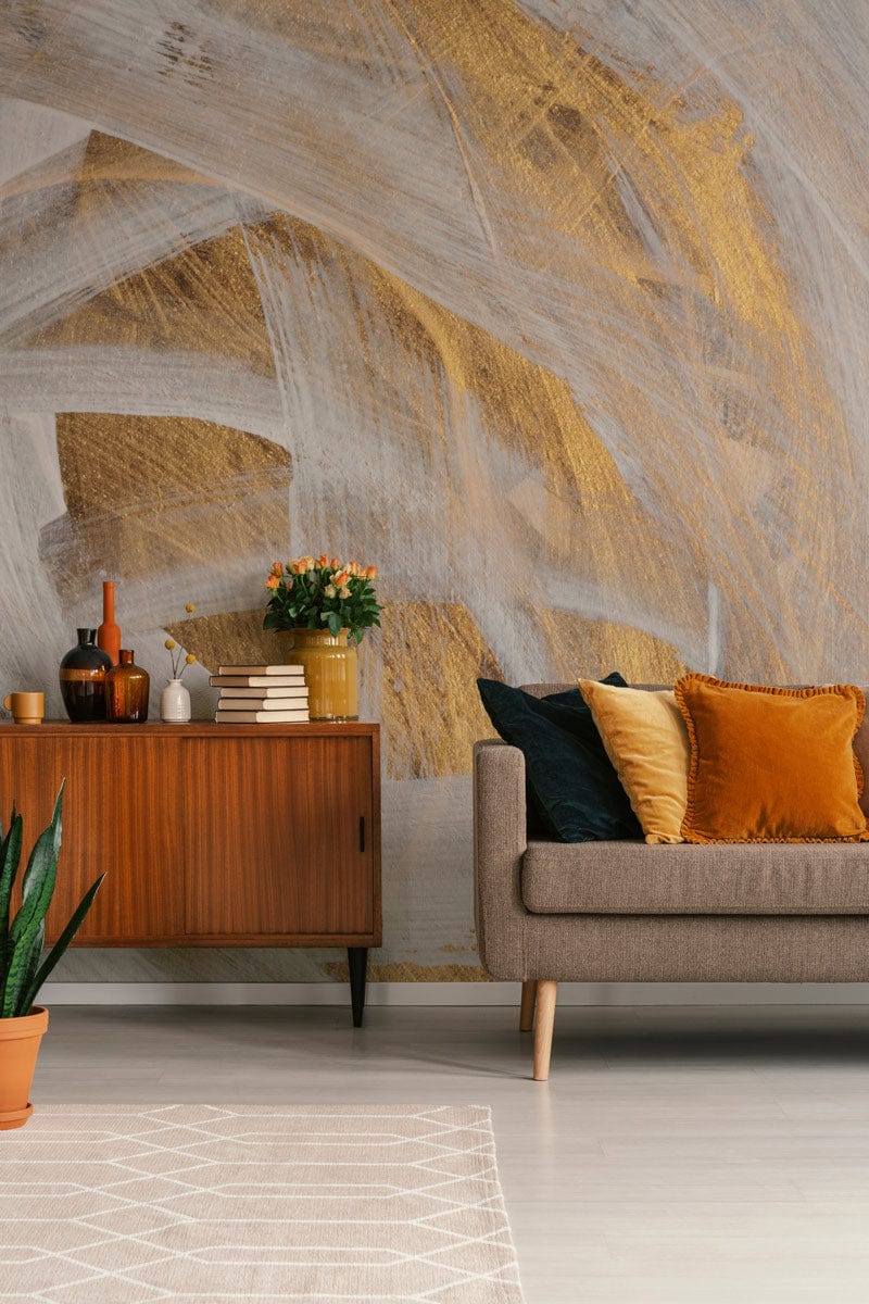 Golden Brushstroke Mural Wallpaper