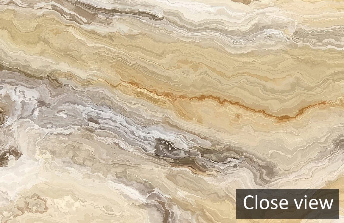 Discover the Golden Dune Marble Mural Wallpaper, where swirling patterns of sand and earth converge, evoking a sense of natural grandeur. Intricate veins of golden ochre interlace with subdued greys and creams, capturing a timeless elegance that seamlessly fits into both classic and contemporary interiors. Its tactile texture creates an inviting ambience that complements a variety of personal styles.
