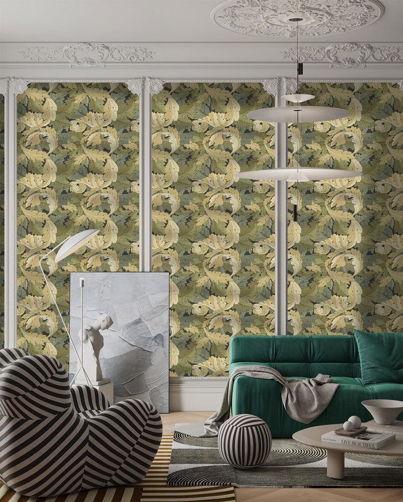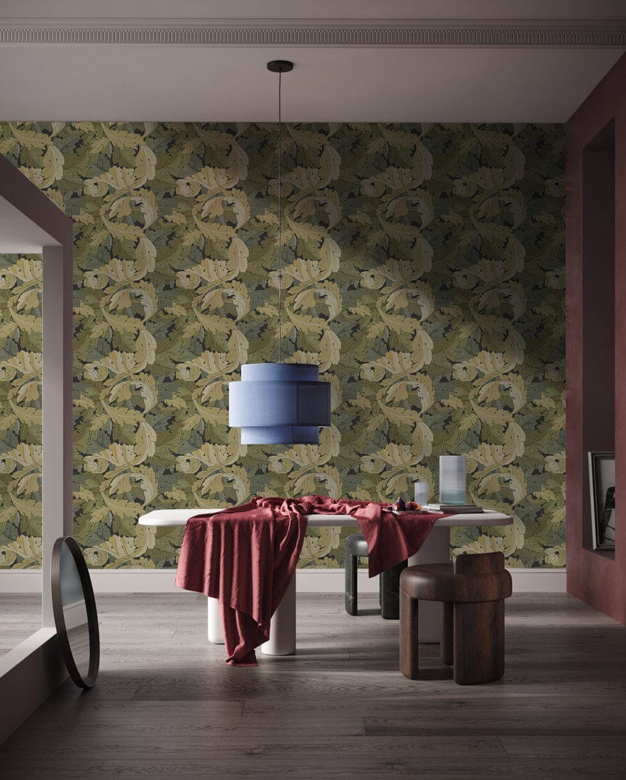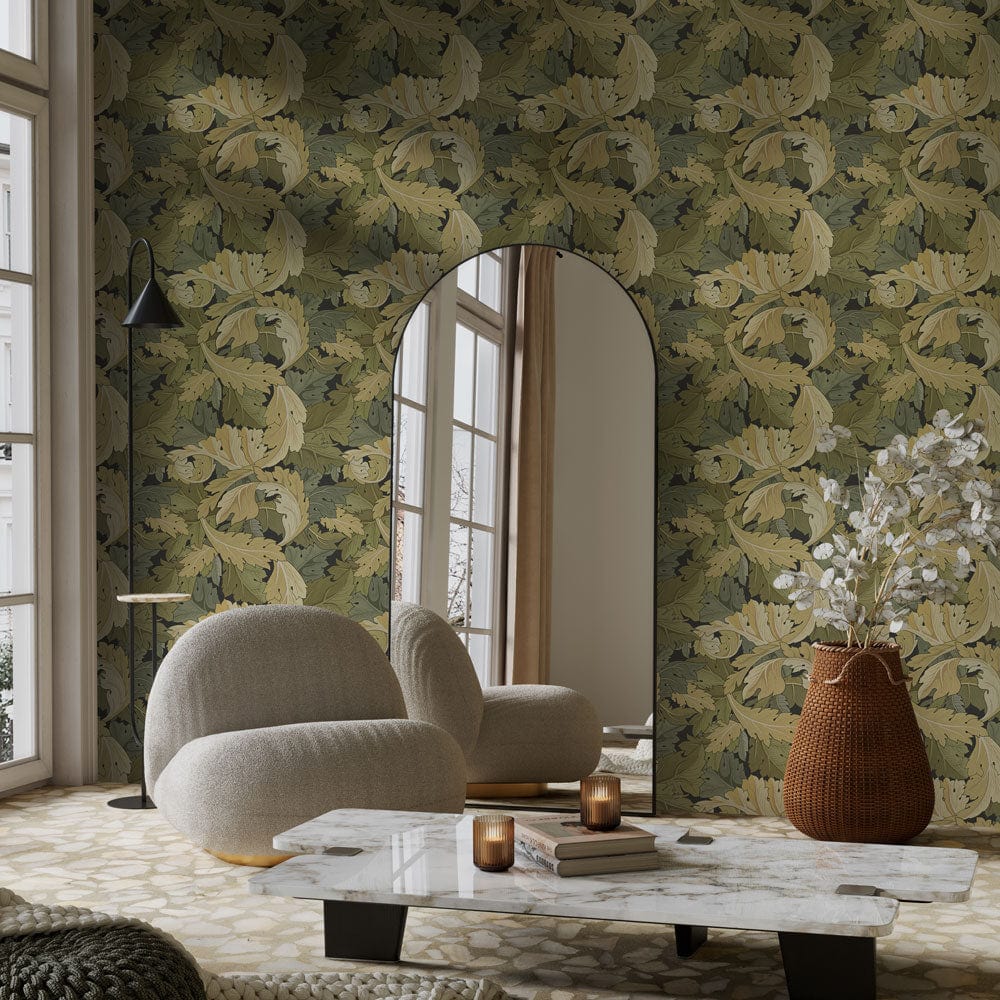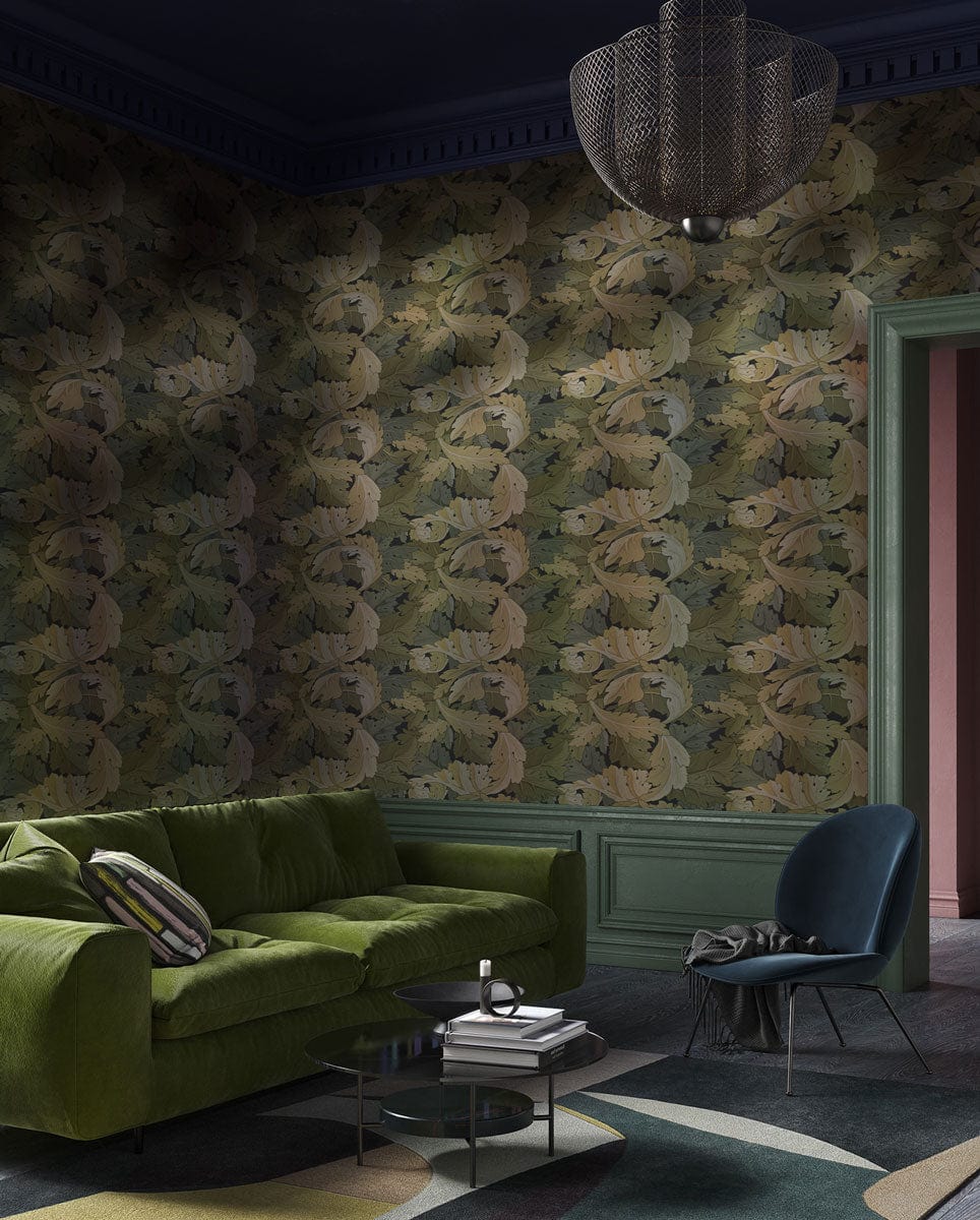 The Golden Leaf Harmony Mural Wallpaper gracefully captures nature's elegance with its intricate pattern of intertwined leaves. The delicate detailing and subtle textures evoke a sense of calm sophistication, making it an exquisite backdrop for a range of interiors. Its timeless design effortlessly complements both classic and contemporary settings, providing a harmonious balance between visual interest and understated elegance.