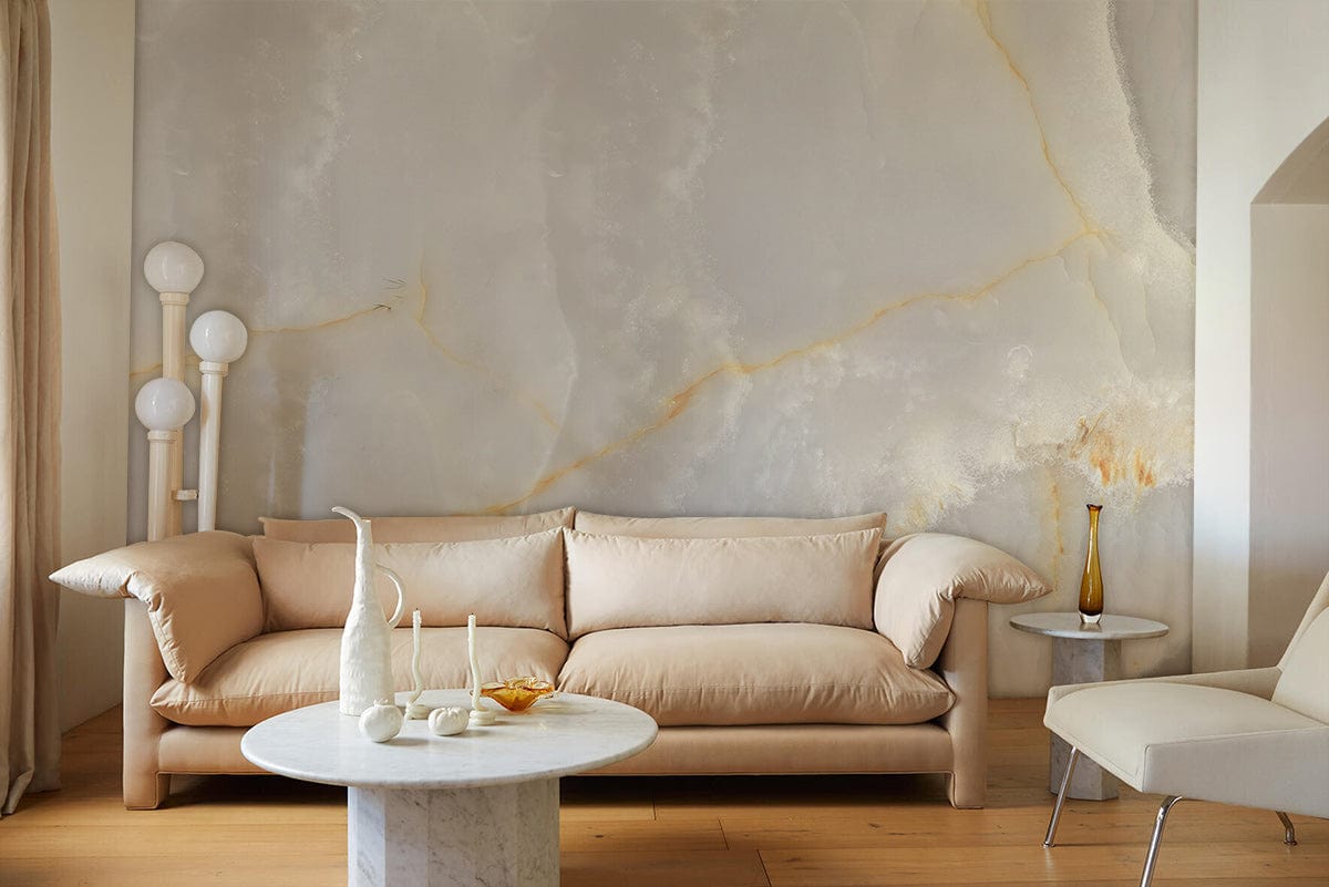 The Golden Light in White Wallpaper Mural exudes an ethereal charm with its soft alabaster canvas interwoven with gentle golden veins. This mural captivates with its marble-inspired textures that evoke a serene luminosity, perfect for creating an atmosphere of refined elegance. Ideal for diverse settings, it effortlessly complements both classic and contemporary interiors, offering a timeless piece of art for your walls.