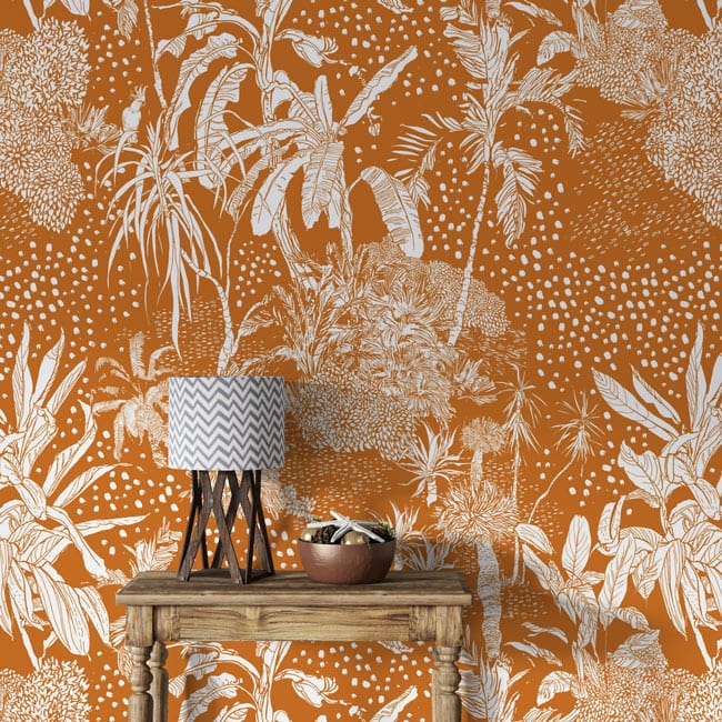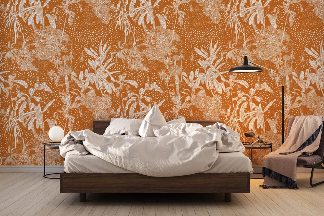 Immerse your space in an exotic retreat with the Golden Tropical Jungle Elegance Mural Wallpaper. This stunning design showcases intricate foliage set against a rich golden backdrop, capturing the vibrant essence of a lush jungle. The detailed botanical patterns provide a sense of depth and sophistication, making it a perfect choice for any room seeking elegance and charm.
