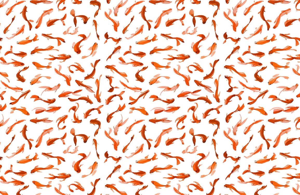 Here's a happy little mural for children and adults alike. Amazingly detailed, our Goldfish Mural Wallpaper depicts a group of goldfish swimming amongst a plain white surface that leads your eyes on adventure all around the room. A gorgeous addition to any space, this mural is created for those who love artsy style and glamorous patterns. From the deep blue water below to the colourful fish above, this mural wallpaper will make your home a real spectacle.