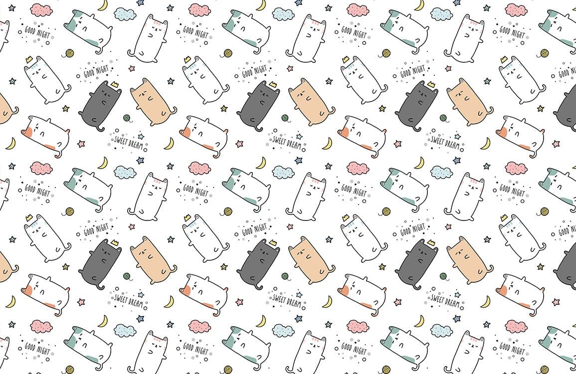 Bring a spectacular vibe to your space with this eye-catching cat portrait wallpaper mural. The design creates various cute sleeping cats in different colours and styles which will impress everyone who sees it. Use it as a feature wall in your bedroom, living room or kids room and pair it with white or pastel colour furniture.