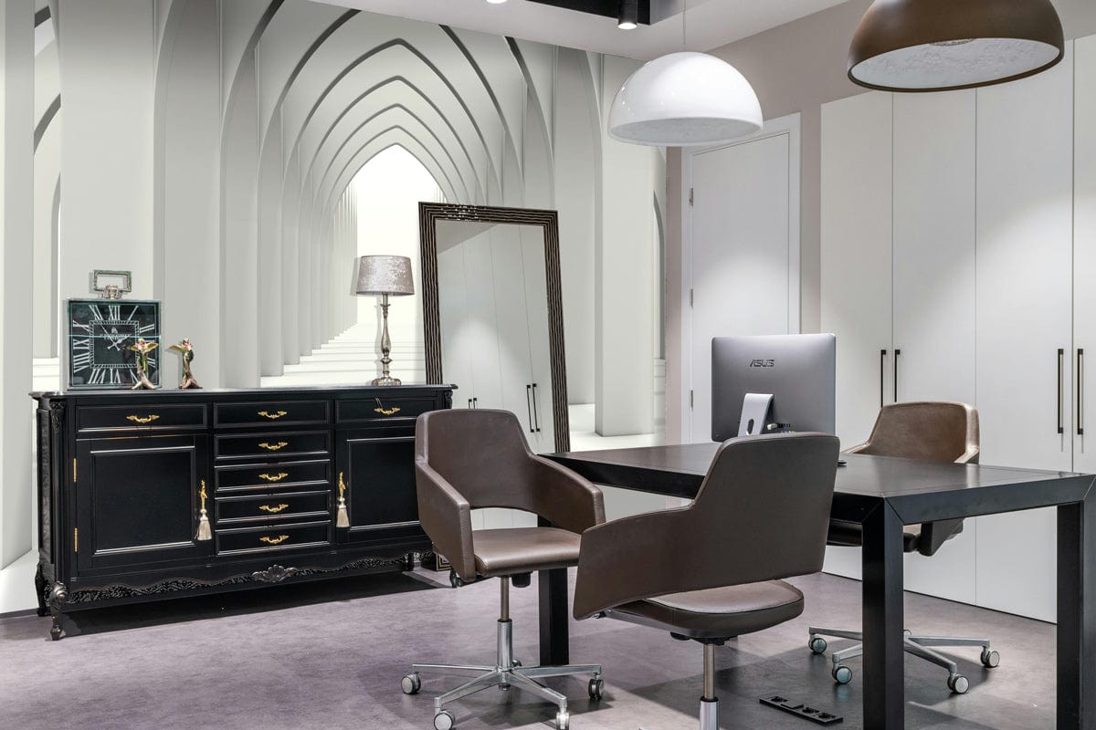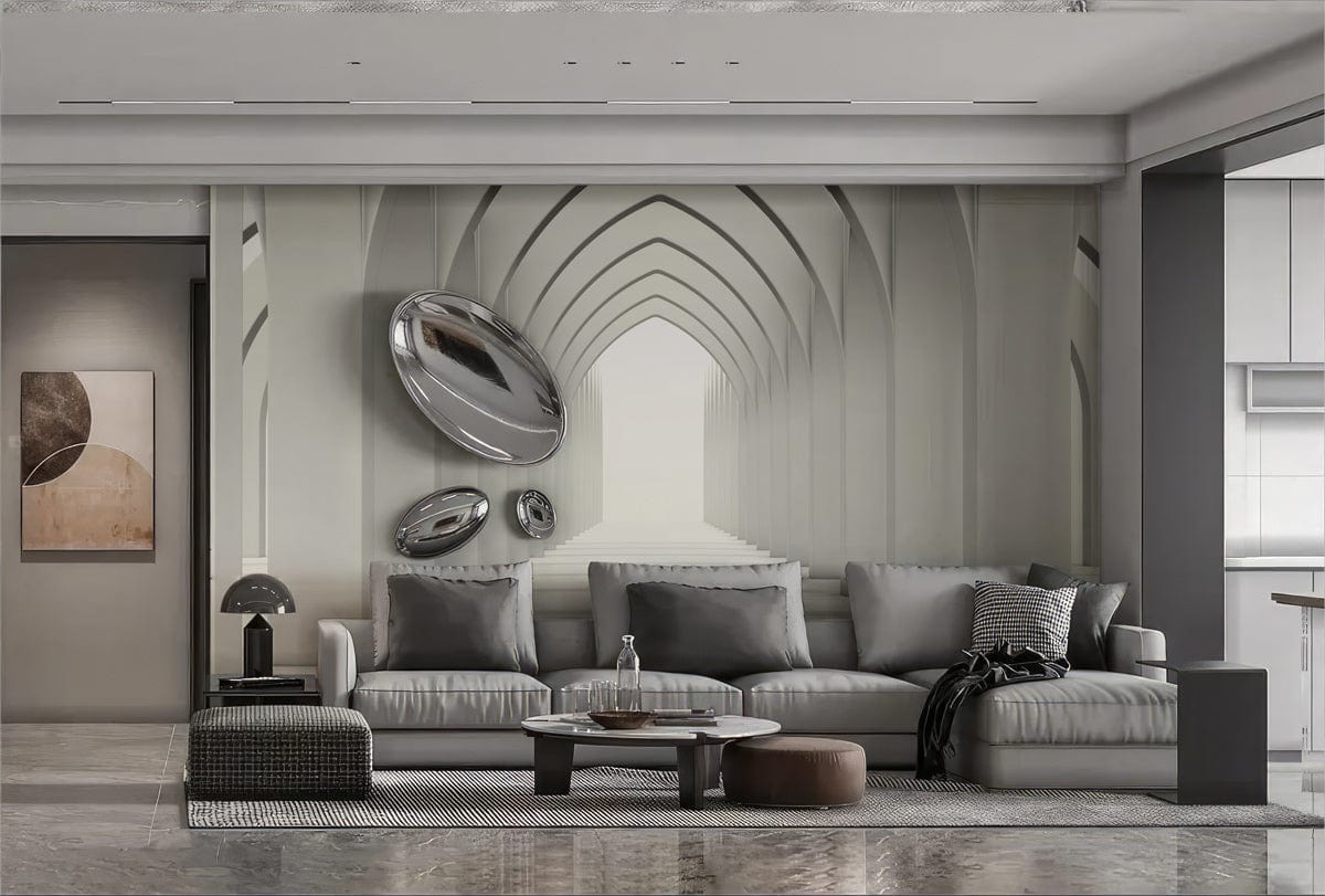 The Gothic Arch Serenity Mural Wallpaper captures the timeless elegance of architectural splendour. Its intricate arch design invites contemplation, drawing the eye along graceful curves that suggest both history and modernity. Subtle shading lends depth, crafting an ambience of serene sophistication that harmonises beautifully with a variety of interior décors.