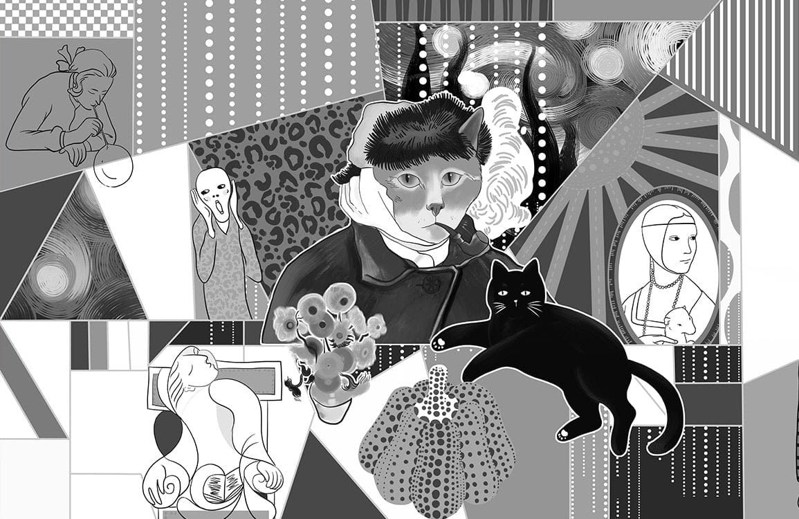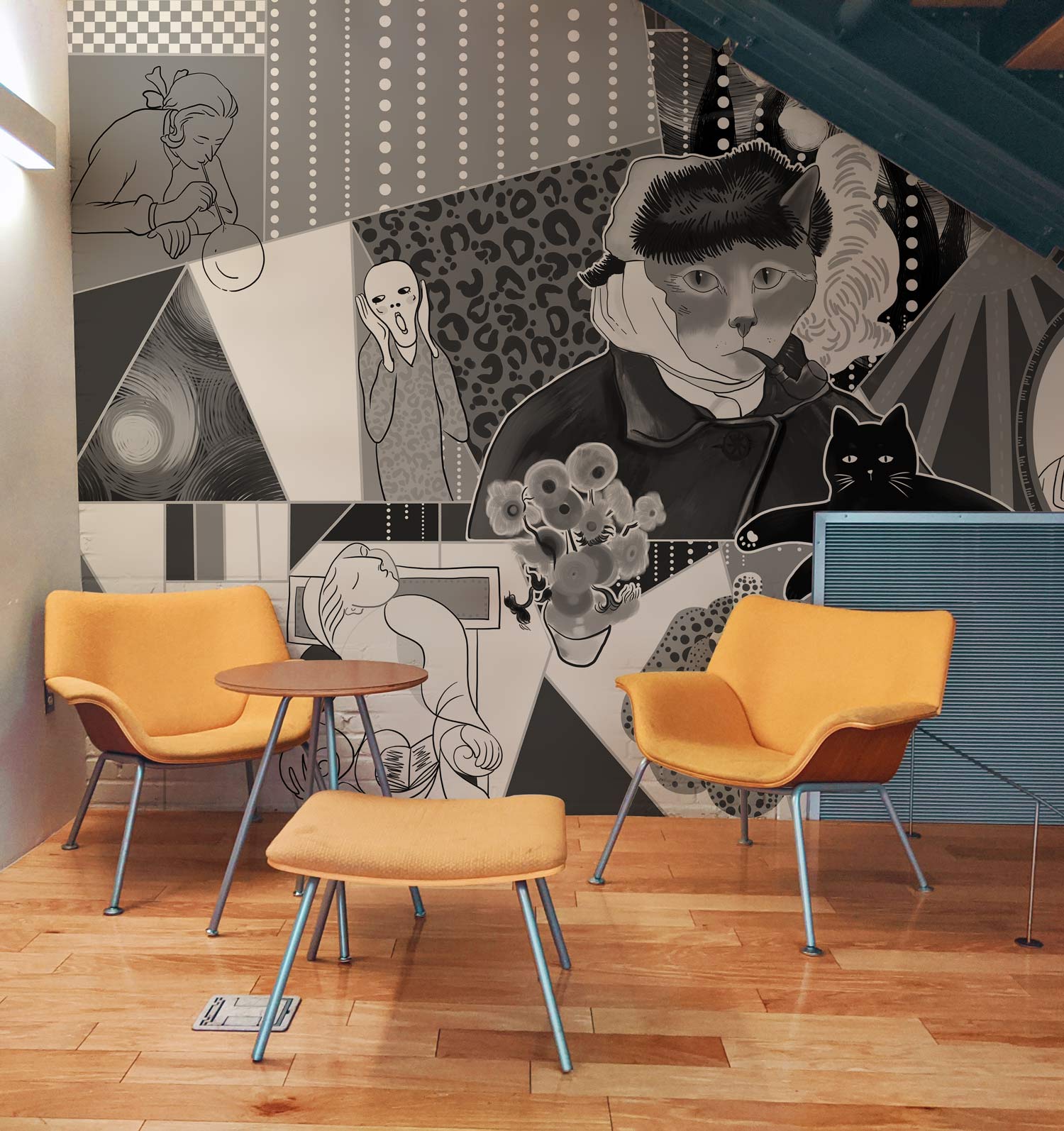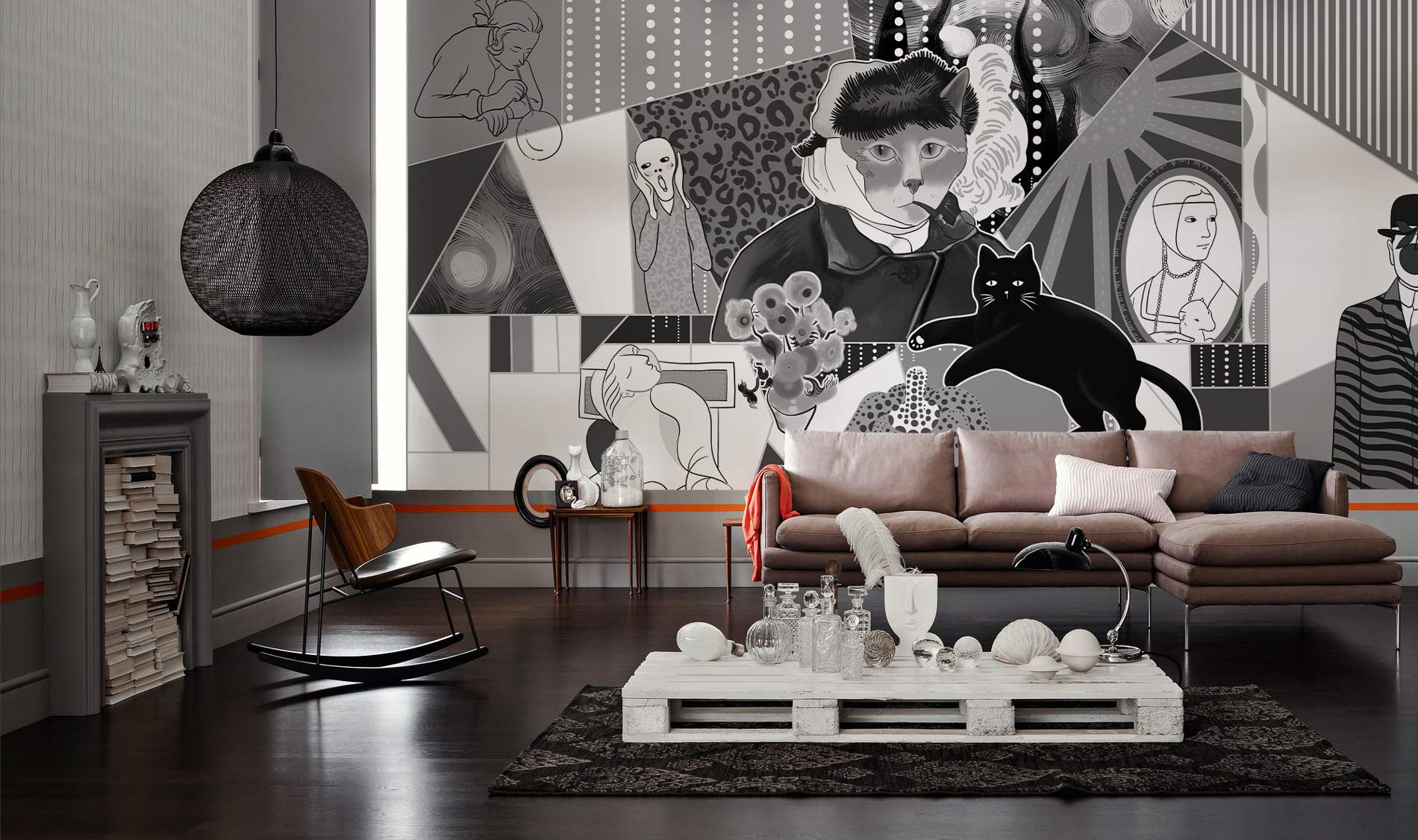 Transform your plain wall into something unique and striking with this graffiti of art wallpaper mural. The numerous famous masterpieces of art are included in this painting gives you a strong visual impact as if you are visiting modern art museum. Ideal wall decoration in your bedroom, living room and hallway.