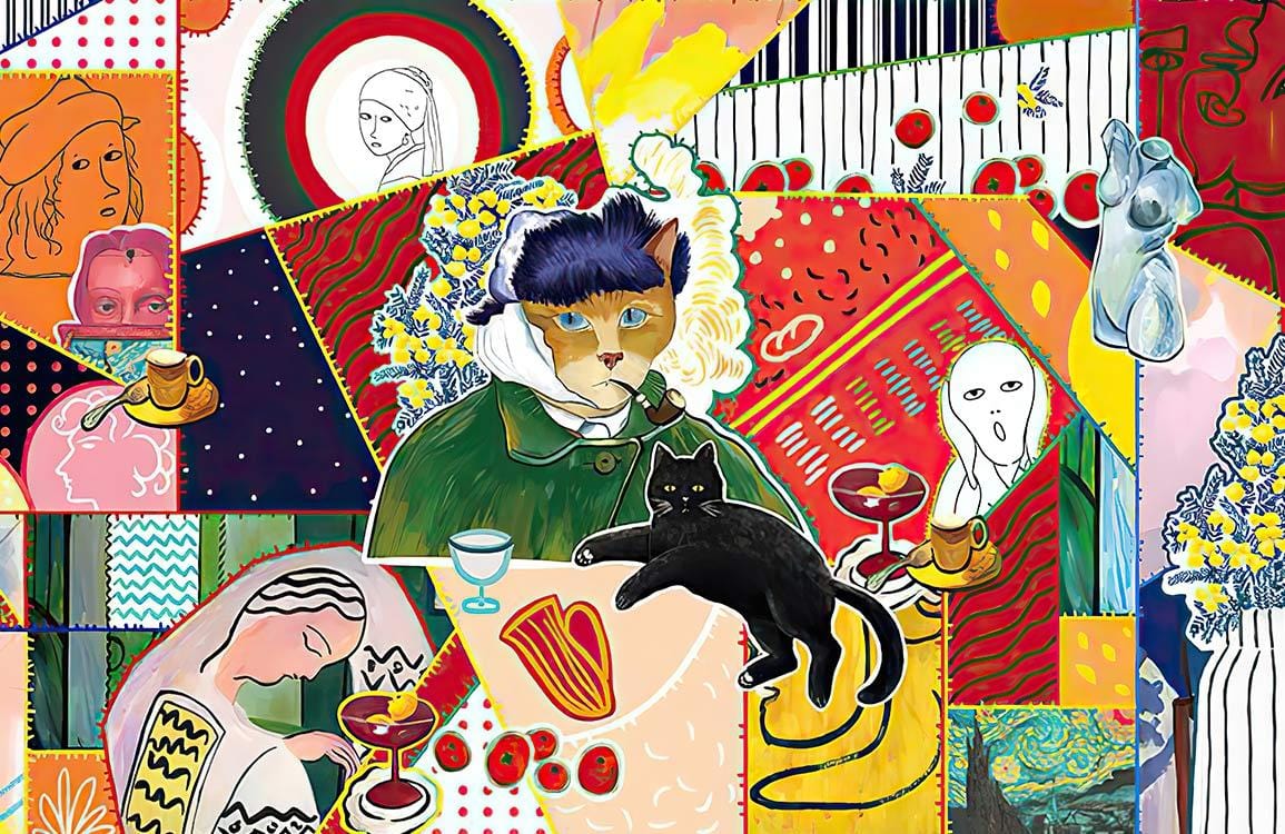 Transform your plain wall into something unique and striking with this graffiti of art wallpaper mural. The numerous famous masterpieces of art are included in this painting gives you a strong visual impact as if you are visiting modern art museum. Ideal wall decoration in your bedroom, living room and hallway.