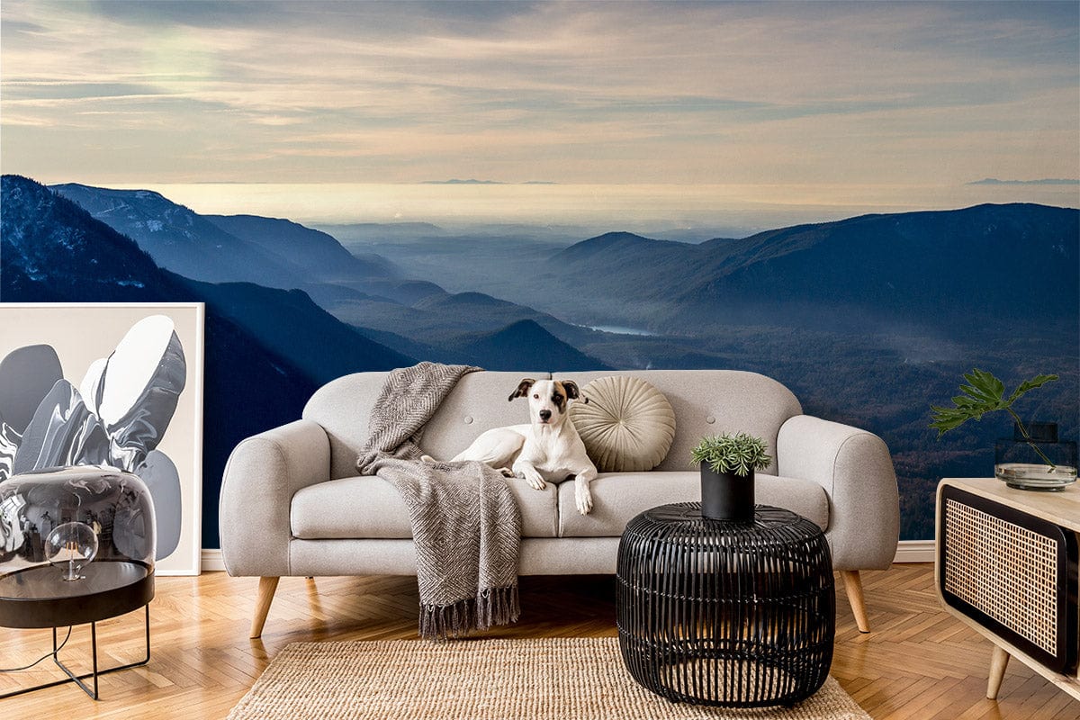 Immerse your space in the majestic tranquility of the Grand Mountain Wallpaper Mural. Inspired by nature's grandeur, this mural captures sweeping vistas of mist-clad peaks in a seamless blend of soft blues and deep greys. The design evokes a serene, expansive atmosphere, effortlessly fitting into both contemporary and traditional interiors with its timeless elegance.