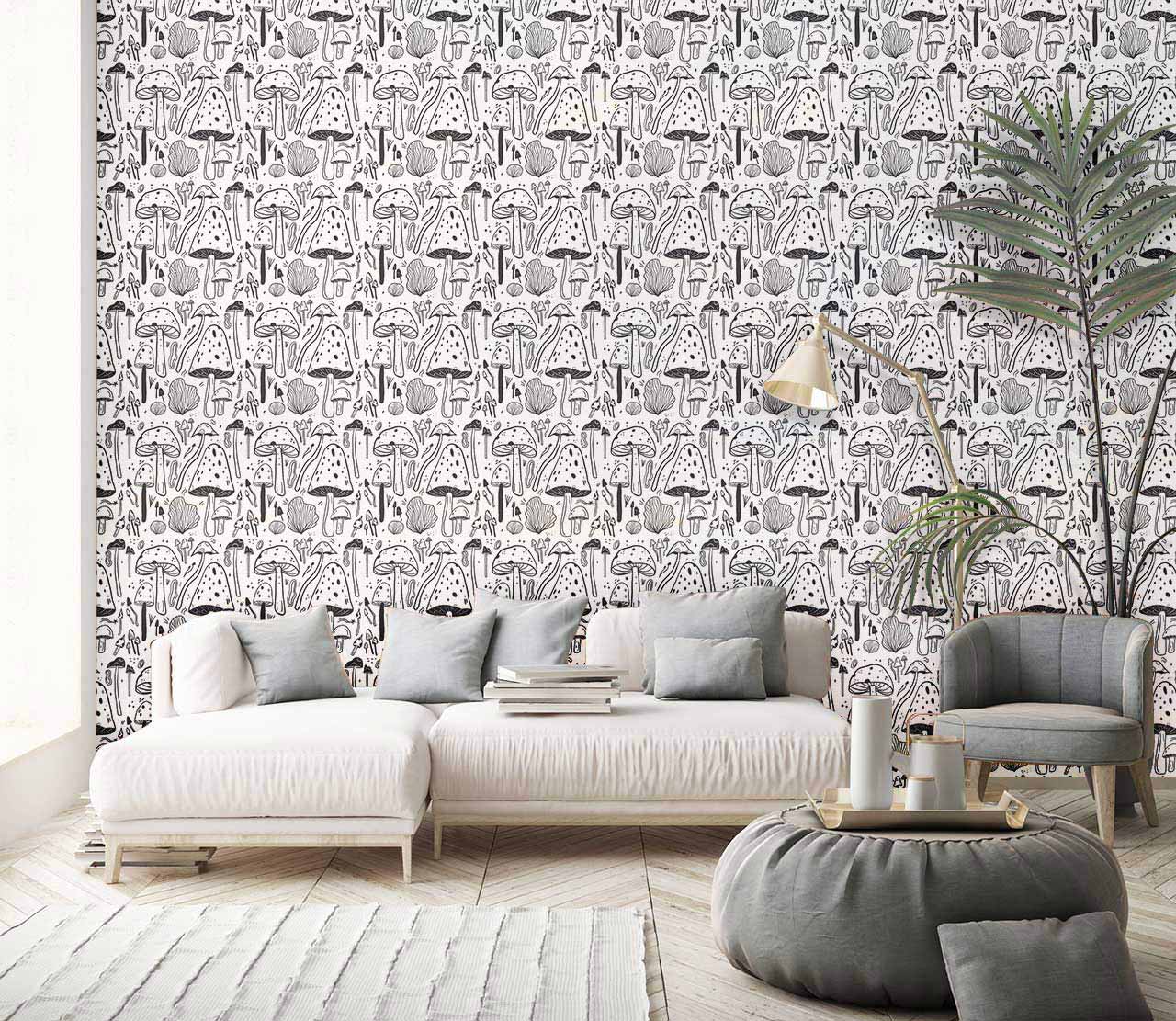 This Gray Mushrooms Wallpaper Mural is stylish and fun. The small patterned mushrooms create a living texture on your walls, while the grey and monochromatic base tones provide a tranquil backdrop for restful meditation or comfortable reading. Your kids will surely love this wall decoration when you hang it on their bedroom walls or play areas. This mushroom wallpaper is easy to apply, with an adhesive backing that can be simply peeled off of the wall and repositioned if necessary.