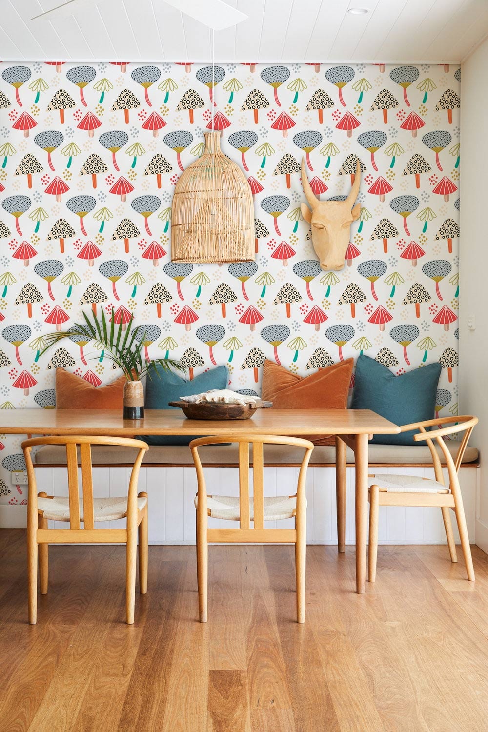 If you are someone who loves a playful and comfy look at home, this Gray and Red Mushrooms Wallpaper Mural is perfect for you. With a grey and red mushrooms design, this fun wallpaper has cheerful mushrooms that will brighten any space. Ideal for home decor, this wall decal is a great way to express your personality and style in any room of the house. The grey and red colour palette highlights the bold rustic look of this mural, perfect for any home or office space.
