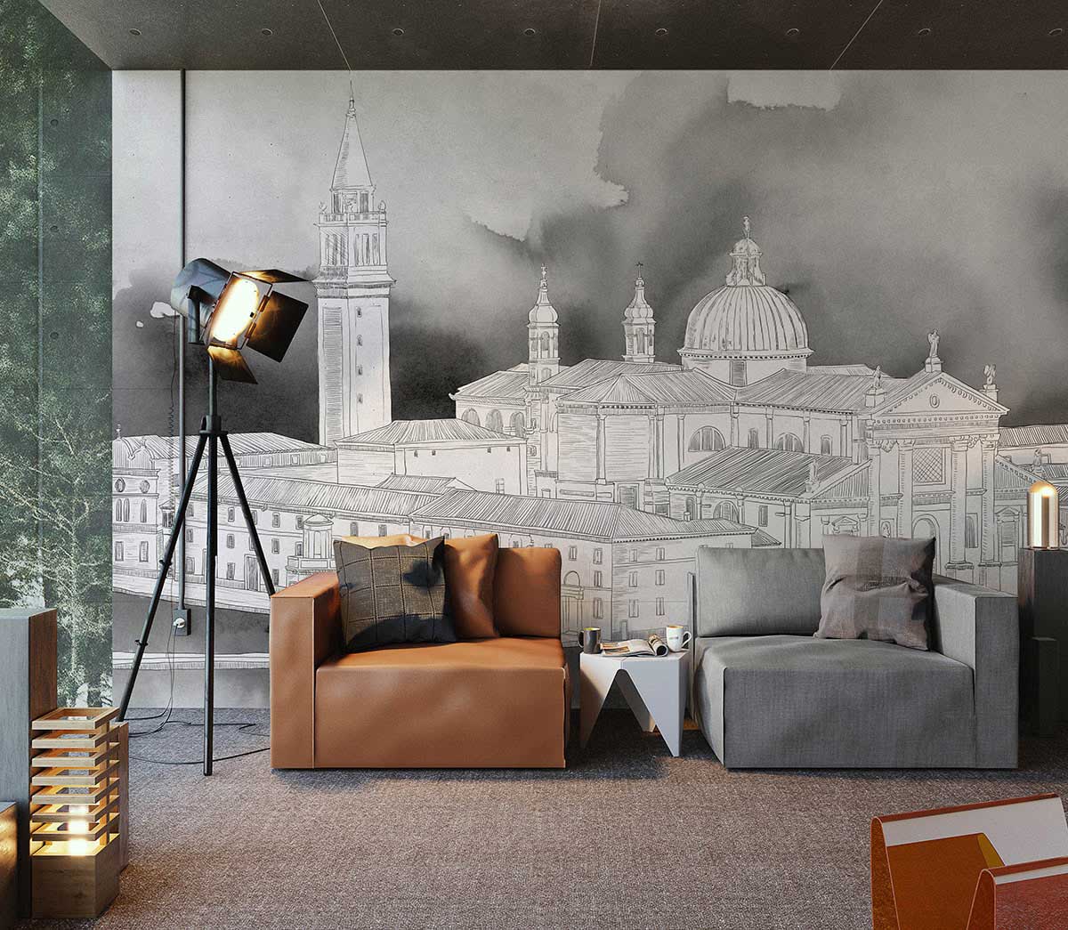 Elevate your wall decor and adorn your space with our Gray Sketch Palace Wallpaper Mural. This stylish mural shows a realistic grey sketch palace, giving your home a classic look that blends seamlessly with all types of decors. The simple but striking sketch brings a contemporary vibe to any room, while the subtle shades will add an elegant touch to your guest room and main living room. This timeless and vintage wallpaper is easy to install and mimics the look of a hand-painted mural, creating an elegant accent for your walls.