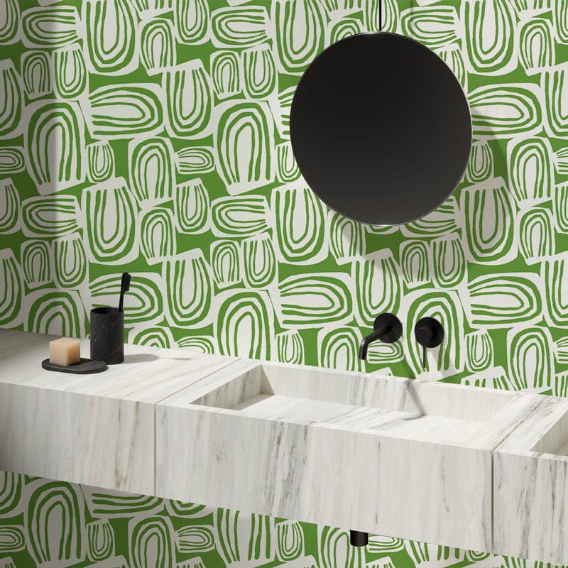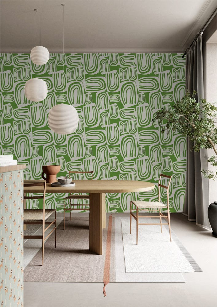 Immerse your space in artistic allure with the Green Abstract Geometric Pattern Mural Wallpaper. Its intricate design intertwines fluid green shapes with crisp white accents, creating a canvas of dynamic texture and refined elegance. Ideal for a modern interior or a minimalist retreat, this mural embodies a harmonious blend of creativity and calm, making it a distinctive addition to any room.