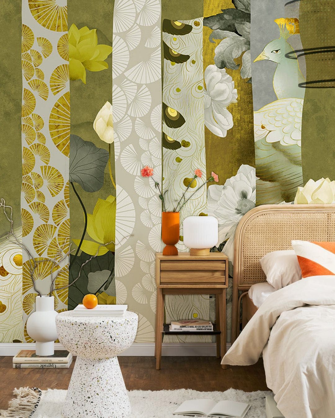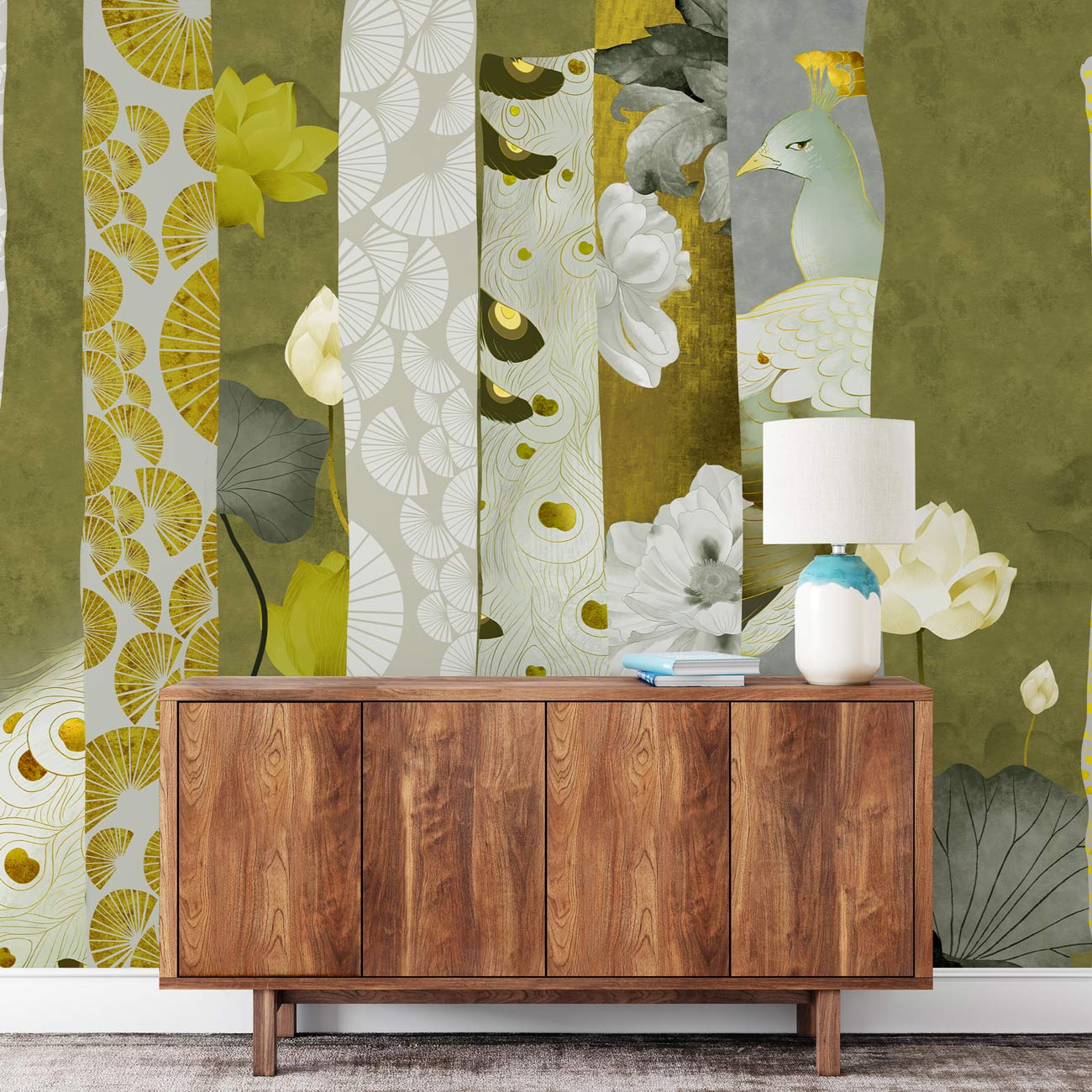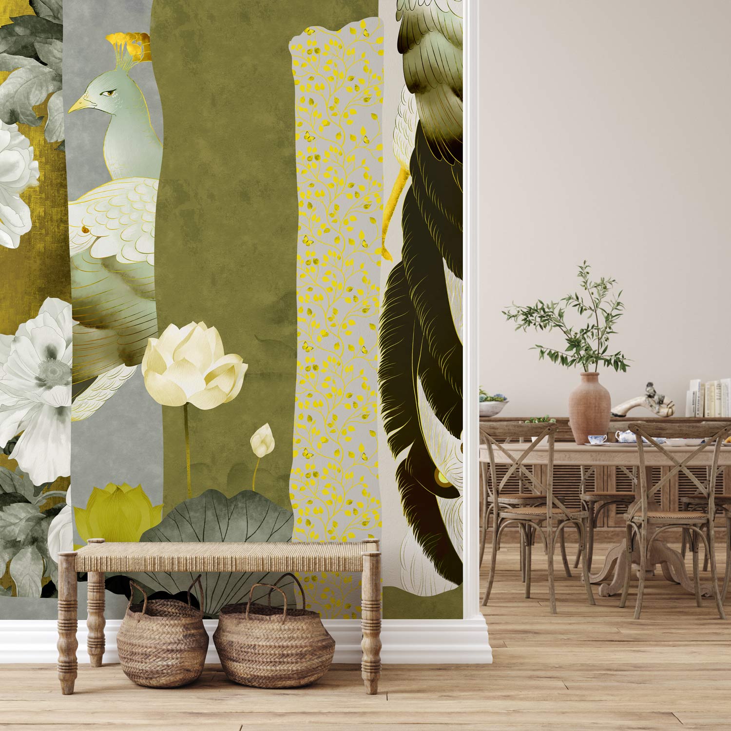 Bring your wall to life with this elegant art deco wallpaper mural. This wallpaper combines a variety of beautiful images in a hamonious way with simple grace. Add a peaceful and calm atmosphere to your living room, bathroom, bedroom and dining hall. Work perfectly to your modern style furniture and home decors.
