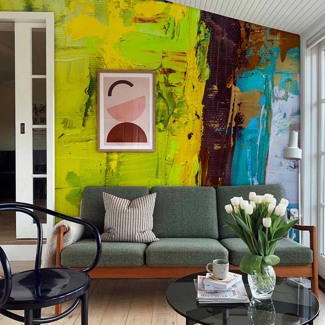 Are you looking for something special to freshen up your wall? Our green and blue graffiti art wallpaper is waiting for you. This unique style of mural wallpaper depicts an oil painting of graffiti that is a great theme for those who love arts and crafts. The modern oil paint on canvas style mural will attract everyone's attention, offering you priceless moods and experiences that are absolutely a perfect decorating material for home and business. So, hurry now and apply the mural to your walls and watch as your living space is transformed into a wall of art.