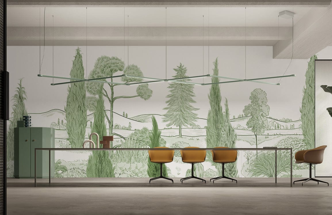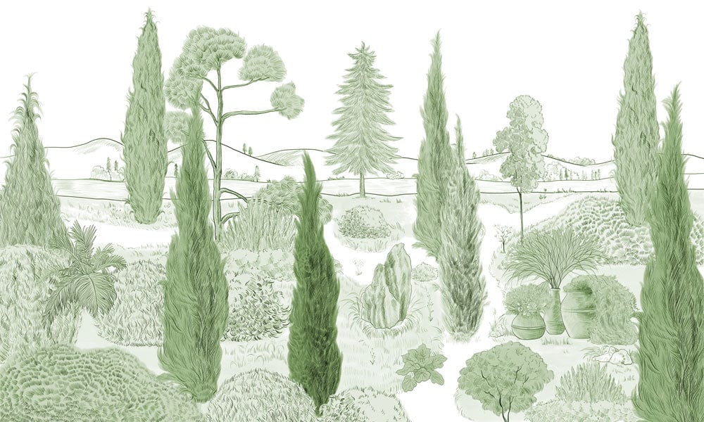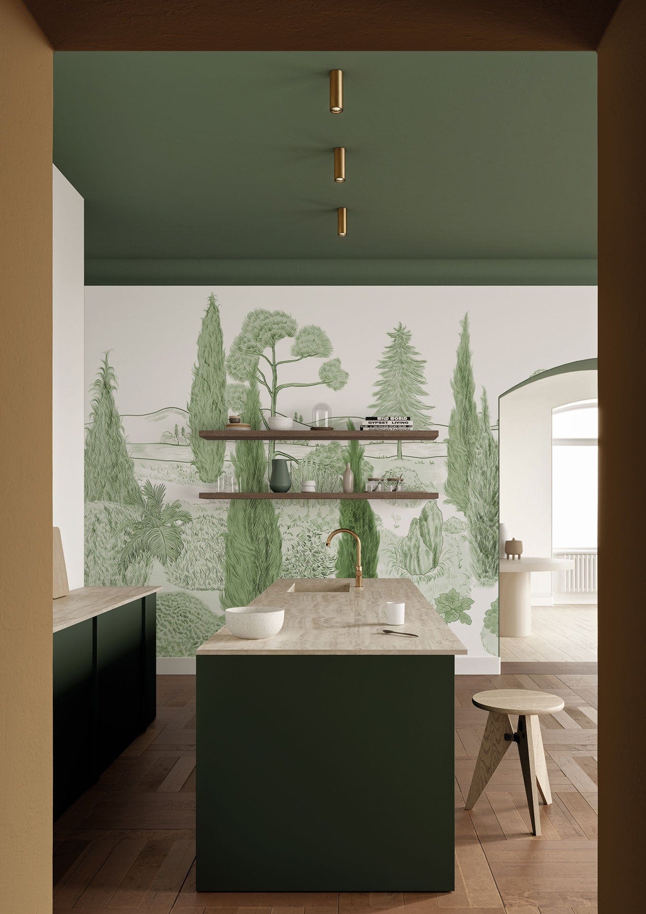 Immerse yourself in serene elegance with the Green Botanical Landscape Illustrated Wallpaper, where verdant vistas come alive through intricate artistic detailing. This wallpaper's delicate interplay of green hues captures a timeless essence, making it a sophisticated choice for any interior. The lush landscape, peppered with diverse botanical forms, evokes a sense of natural harmony that complements a variety of decorating styles.