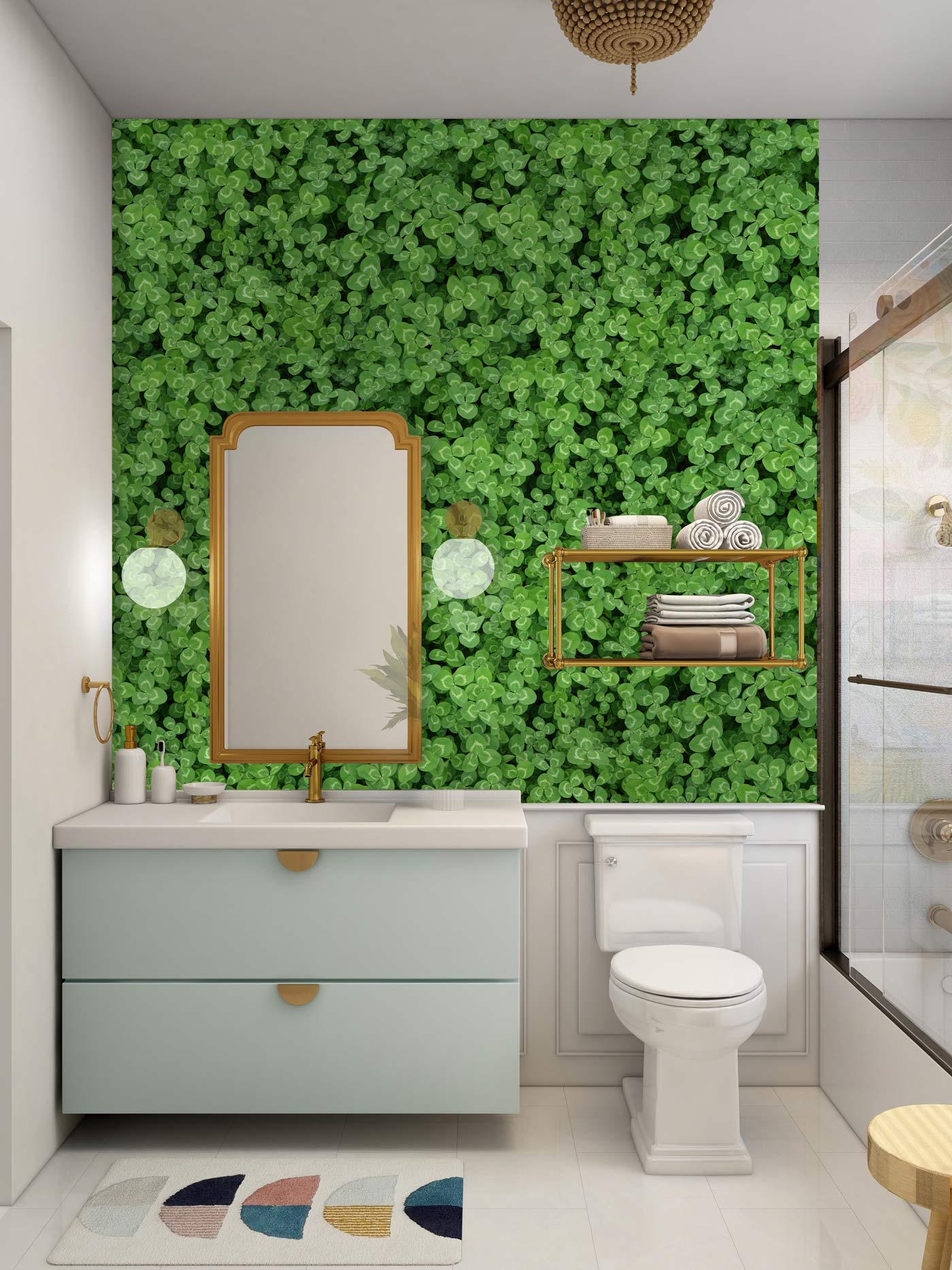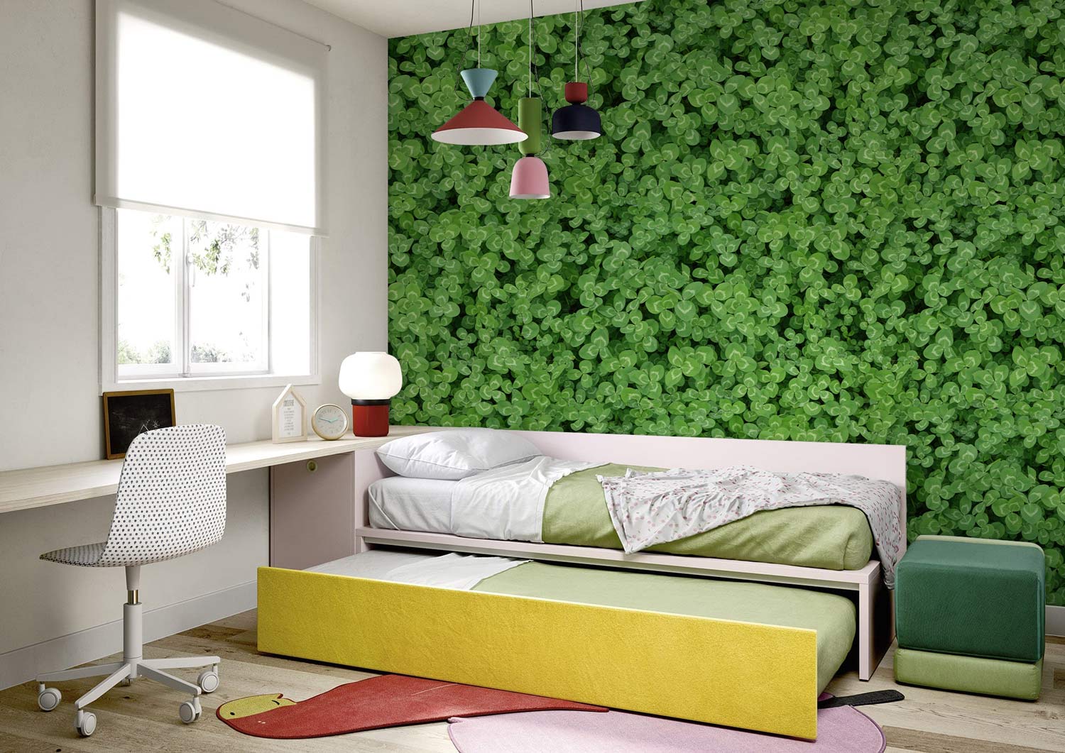 Bring nature close to you with this green leaves wallpaper mural. These fresh green clover leaves pattern design make a rather dramatic print and will surely make a nature and stylish statement in your home. This stunning green wallpaper will look amazing in your living room, bedroom or dining hall.