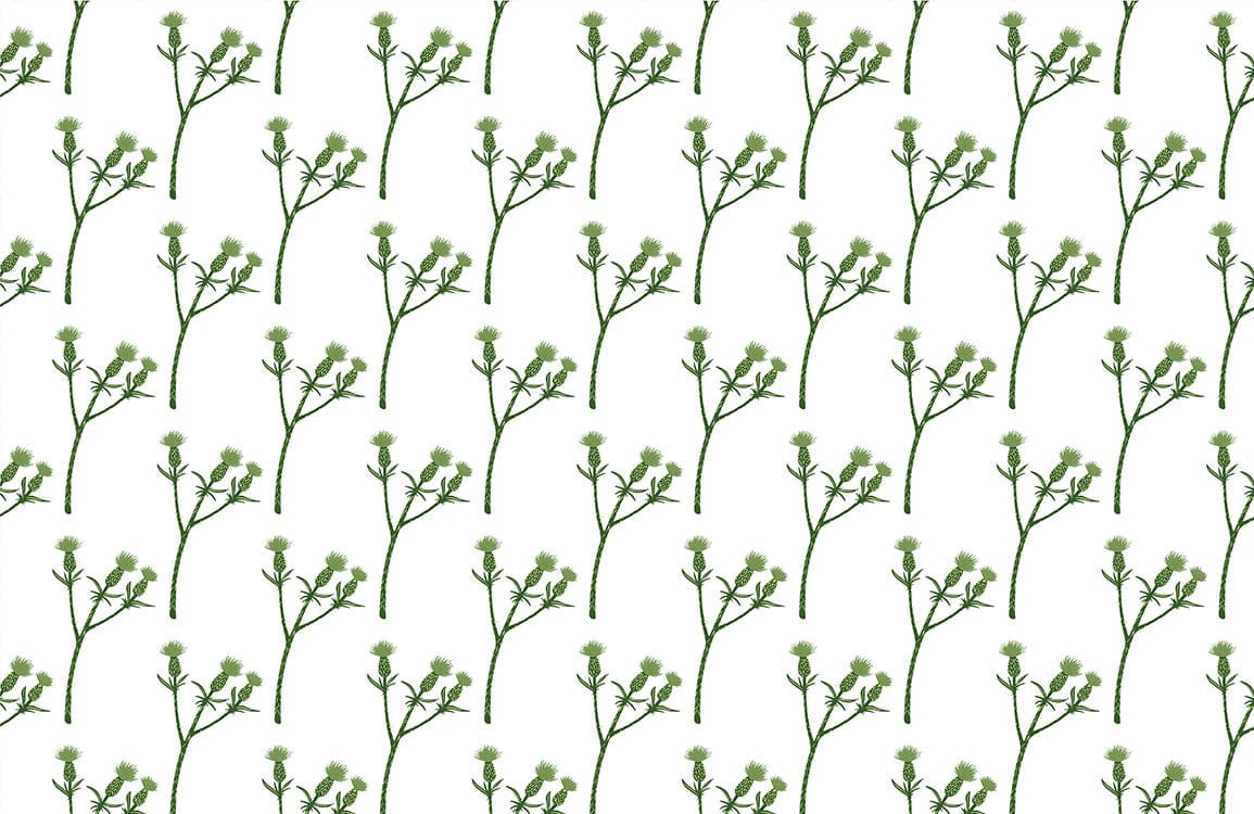 Embrace a touch of nature with this green floral pattern wallpaper mural. Delicate stems gracefully intertwine against a crisp white background, creating a serene ambience that evokes the gentle charm of a garden. Each floral motif captures intricate detailing, lending a timeless elegance to any space, perfect for creating a fresh and inviting atmosphere. This mural harmoniously fits a variety of settings, infusing them with a sense of sophistication and classical beauty.