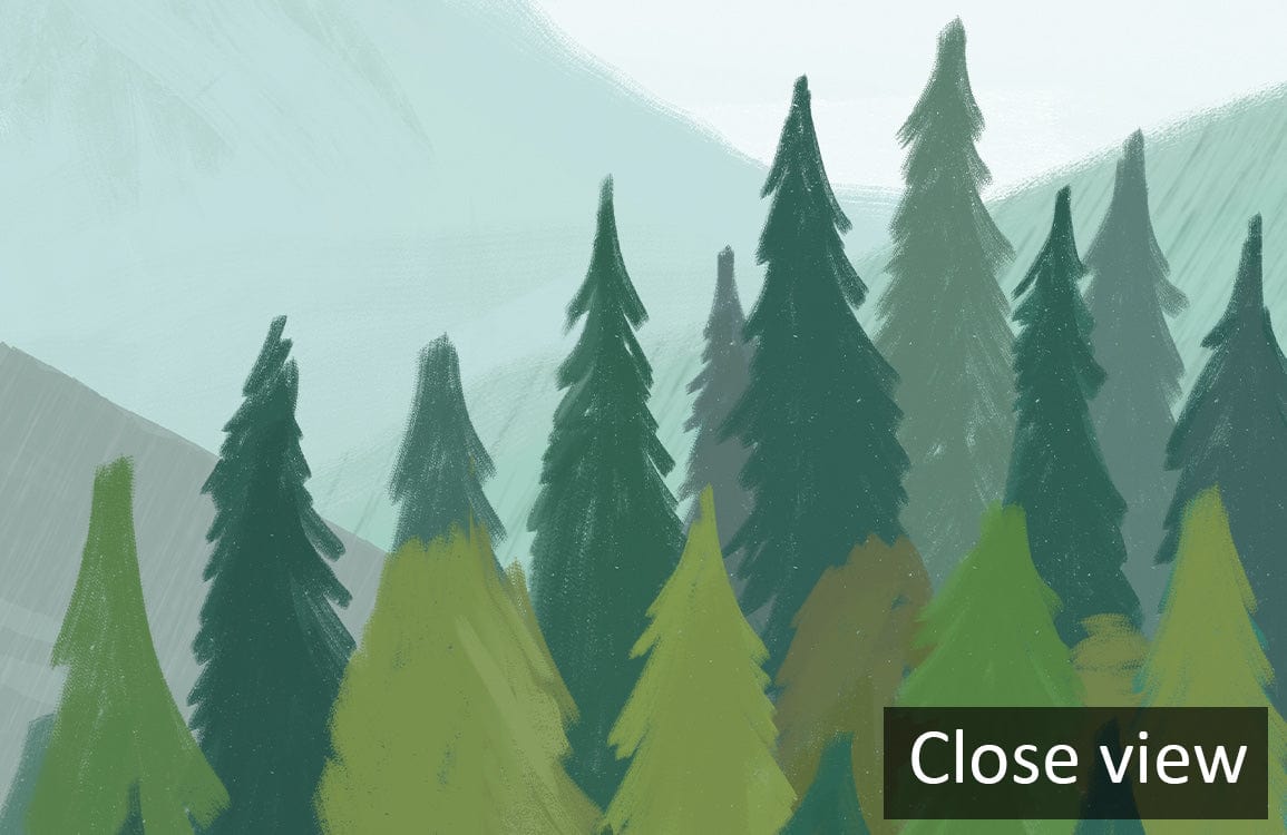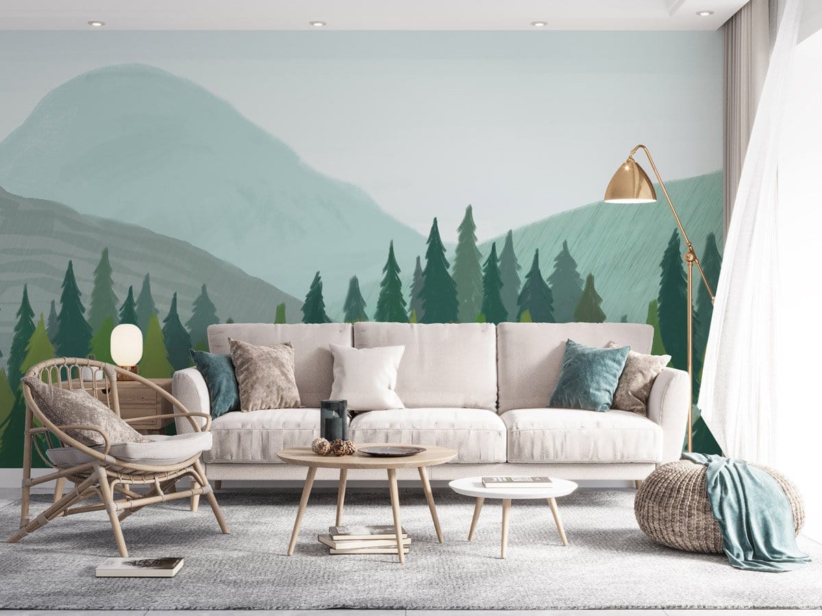 Create a natural theme at home with this green water colour forest mountain wallpaper mural. With our premium paper texture and water colour techniques, this unique design will create a peaceful atmosphere while keeping the space minimal. Why not use this forest wallpaper in your living room, bedroom or dining room to upgrade your wall decor.