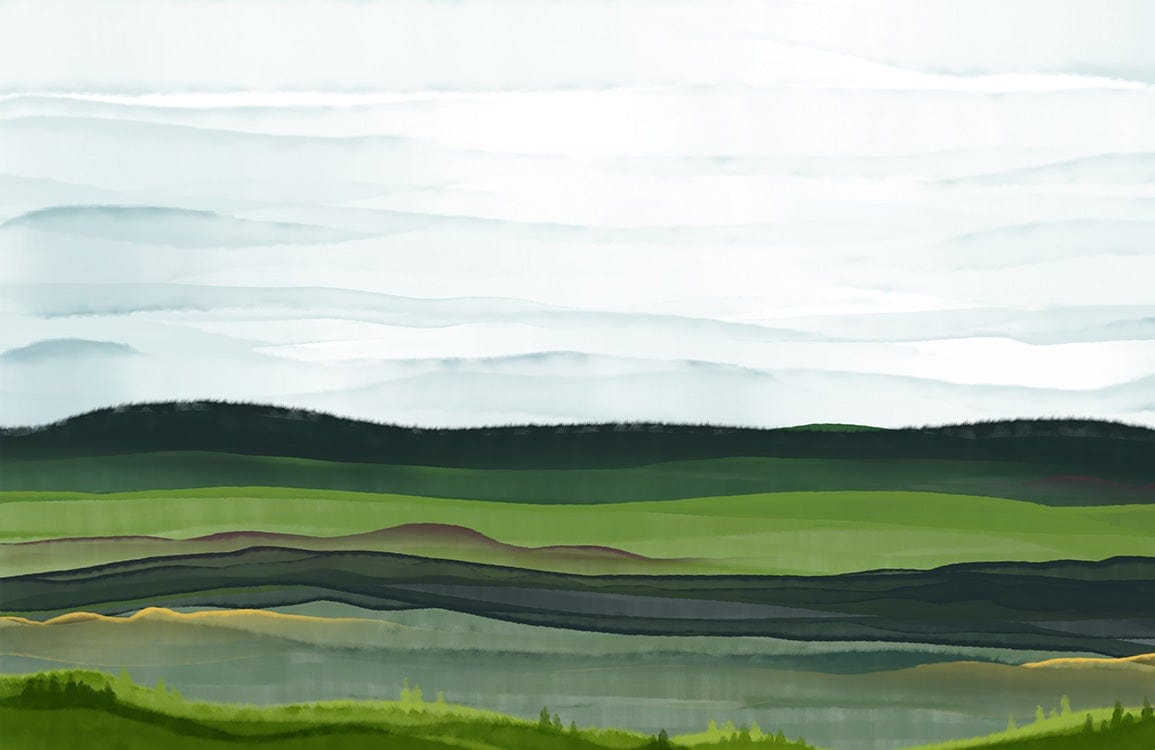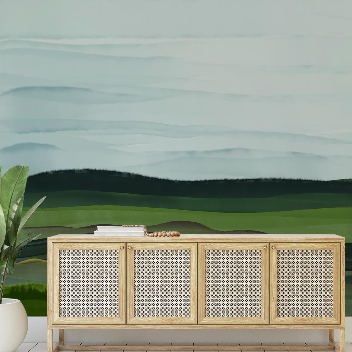 Immerse yourself in the serene beauty of rolling pastures with the Green Grassland Wallpaper Mural. Its elegant depiction of undulating fields, painted in soothing hues, captures the tranquil essence of nature, making it a timeless addition to any space. This mural effortlessly breathes life into interiors, offering a gentle palette of greens, greys, and creams that delicately complement a wide range of decor styles.
