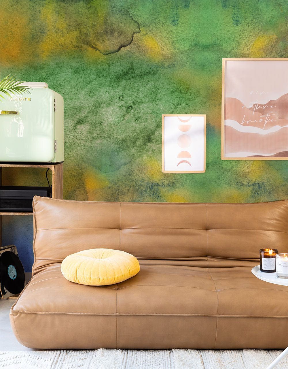Enhance the look of your room with this beautiful Green Lake Wallpaper Mural. The graphic pattern in this mural features striking shades of green and orange with splashes of muted blue, pink, yellow, and black assembled by an abstract water colour technique. The colourful water colour scenery in this fun wallpaper is perfect for your home and will add a bit of whimsy to any room of your choice. Ideal for your office and any working environment, this mural will stimulate you in getting your stuff done on time.
