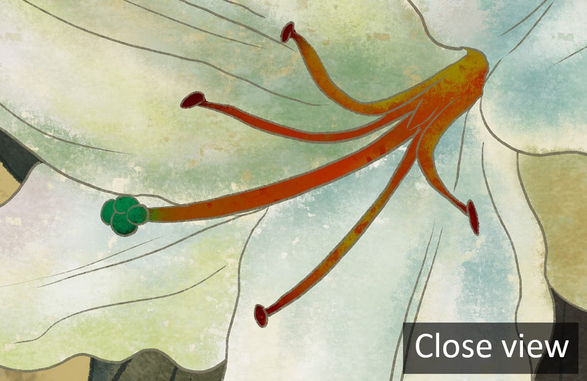 The Green Lily Bouquet Wallpaper Mural exudes elegance with its intricate depictions of delicate lilies against a background of lush greenery. The subtle interplay of soft green and cream hues creates a sophisticated ambience, perfect for infusing any room with a timeless charm. Its rich texture and artistic detail make it a versatile piece, seamlessly complementing a range of interior styles.