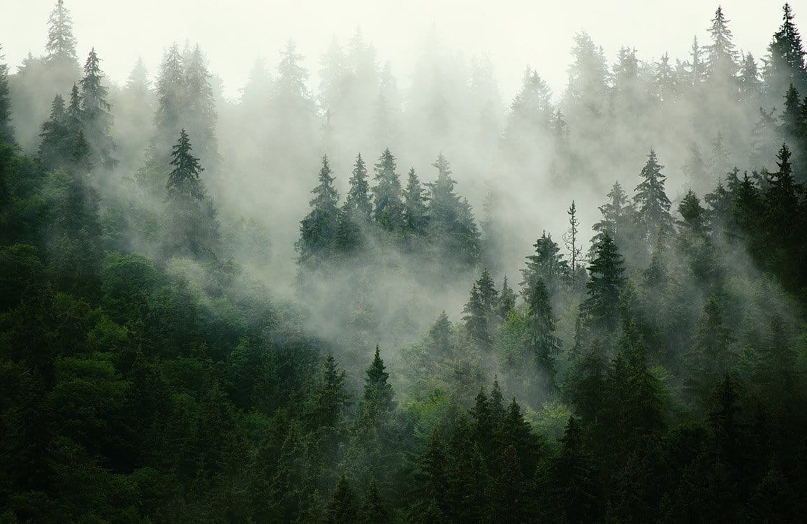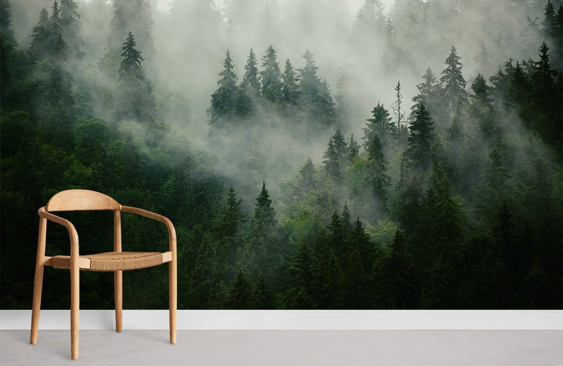 Our misty forest wallpaper mural will transform your room into a natural beauty. Install this forest wallpaper in your workplace or anywhere at home! With such a deep green tone, choose decor with similar shades. Choose white accent pieces to reflect the tones in this tree mural.