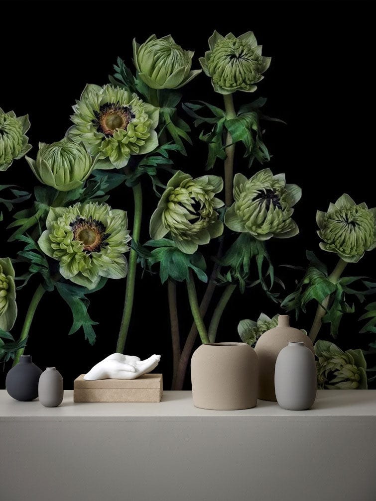 Immerse your space in a world of artistry and nature with the Green Rosa Wallpaper Mural. This masterpiece showcases lush, verdant blooms set against a dramatic dark backdrop, highlighting intricate details and textures that breathe elegance into any room. Its sophisticated blend of colours and timeless design makes it a perfect addition to both traditional and contemporary interiors.