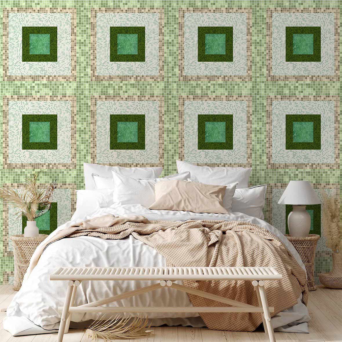 The Green Squares Mosaic Wallpaper Mural presents a captivating design that features artfully arranged geometric patterns. With its rich layers of green and subtle earthy tones, this mural provides a vibrant yet serene atmosphere. Its finely detailed textures render an exquisite mosaic effect, making it an ideal choice for adding a touch of sophistication to any setting.