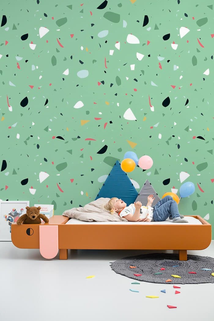 Get the simple look of terrazzo tiles on your walls with this gorgeous green wallpaper mural. This on-trend light green terrazzo wallpaper will create a soothing effect and add simple grace to your living room, bedroom, dining room, bathroom and children's room. Ideal wall mural that works perfectly with any furniture styles.