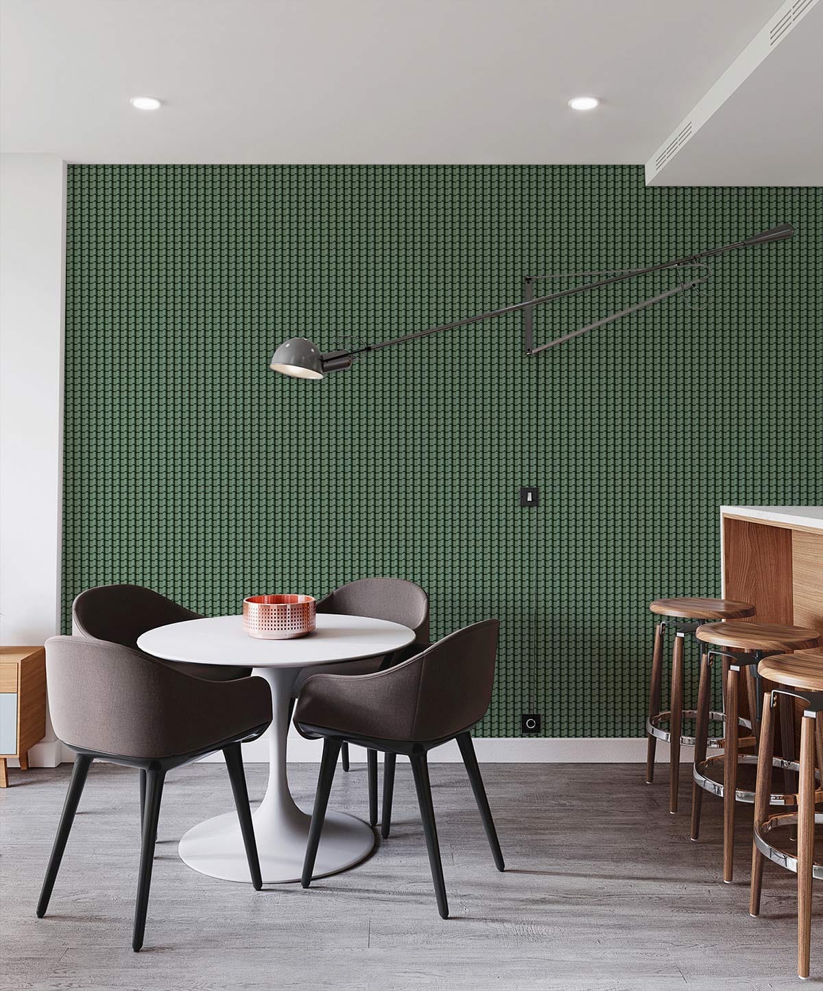 If you are looking for a stylish pattern wallpaper mural that can fit your interior space and art decorations, then this repeated green tile pattern wallpaper mural is your perfect choice. This unique design will be sure to add an eye-catching element to your home interior design.