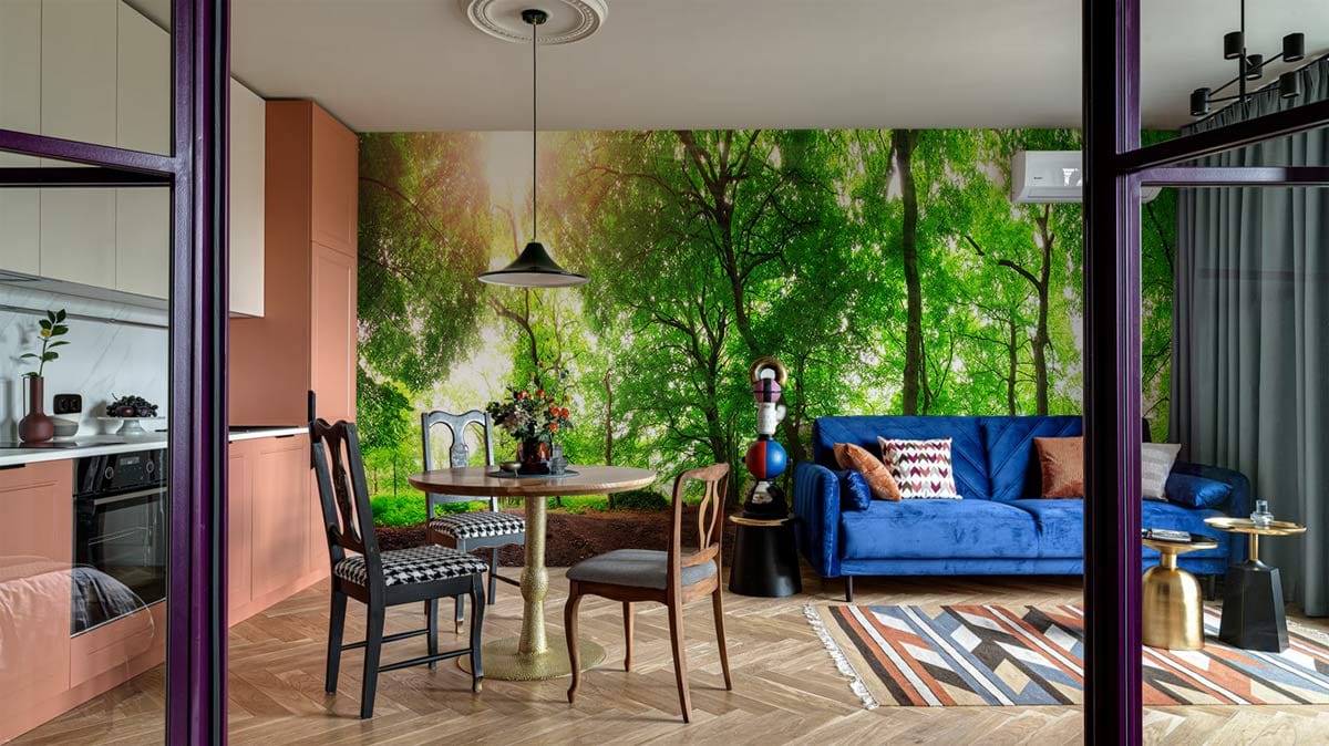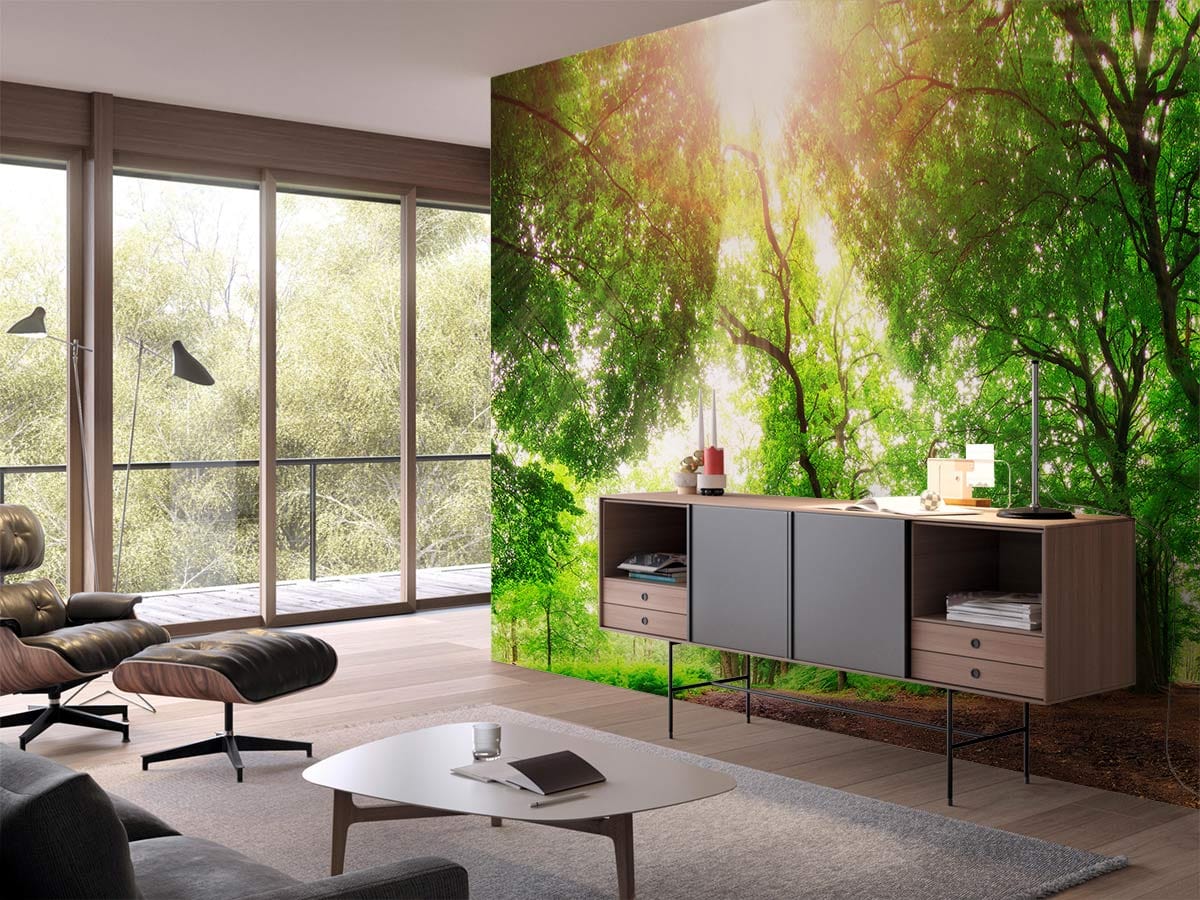 The Twisty Trees Wallpaper Mural breathes life into any space with its intricate depiction of a lush forest canopy. Sunlight dances through verdant leaves, casting dappled shadows that create an atmospheric backdrop. Perfect for bringing the tranquil beauty of nature indoors, this mural pairs well with both classic and contemporary interior styles.