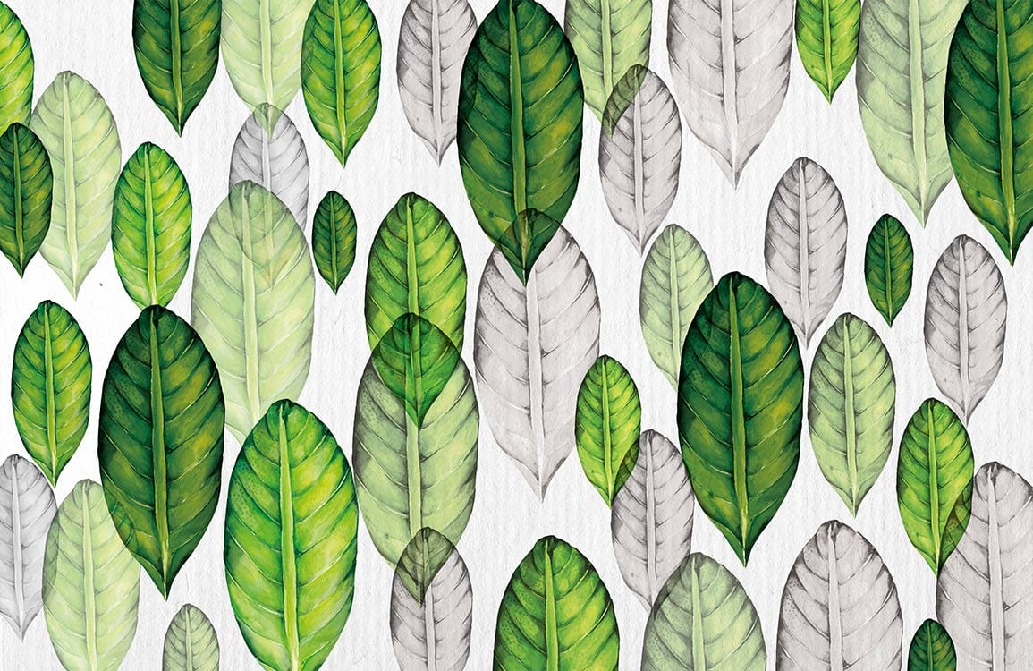 Enjoy this modern design of green leaves mural wallpaper that will give a refreshing look to your place and will make it look wider. With this light palette of colours at the background and the integrity of leaves鈥?design we assure you that this, mural will take your place to a new level of elegancy and simplicity. The design works for bedrooms, living rooms and also clinics, and offices and will make the vibe very charming and chic.