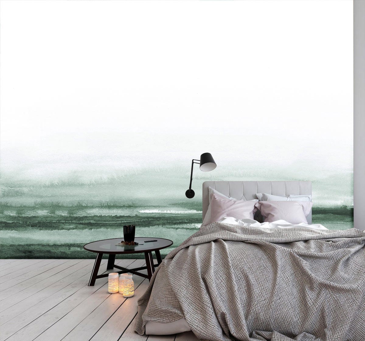 Discover the serene elegance of the Green Ombre Wallpaper Mural, where delicate waves of green subtly blend into one another, creating a sense of tranquillity and depth. This mural's artful gradient boasts a watercolor-like texture that invites a soothing atmosphere, gracefully fitting into diverse spaces with its understated charm.