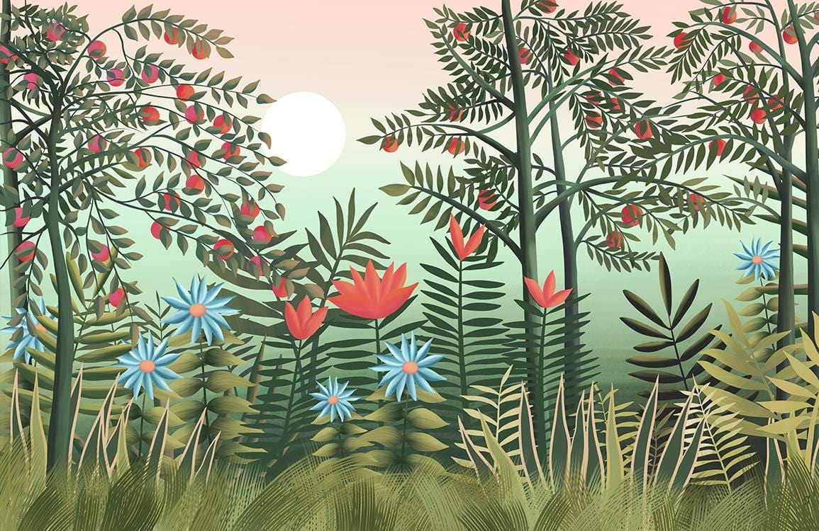 Get a peaceful feeling with this leafy green woods wallpaper mural in your home. With gorgeous natural tones of green, there is definitely a vintage, dreamy feel to this work of art. These magnificent and vivid wallpapers let you dive in the inspiration and greatness of both nature and art. Great wallpaper mural choice for your hallway, bedroom and living room.