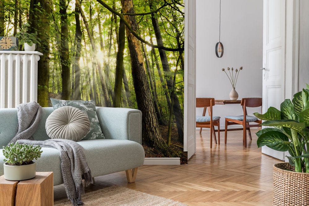 Immerse yourself in a tranquil woodland escape with the Green Woods on Slope Wallpaper Mural. This captivating design elegantly captures the gentle interplay of sunlight filtering through lush green canopies, creating a serene atmosphere that evokes the timeless beauty of nature. Perfectly suited for both classic and modern interiors, its intricate details and soothing texture bring a sophisticated yet organic charm to any space.