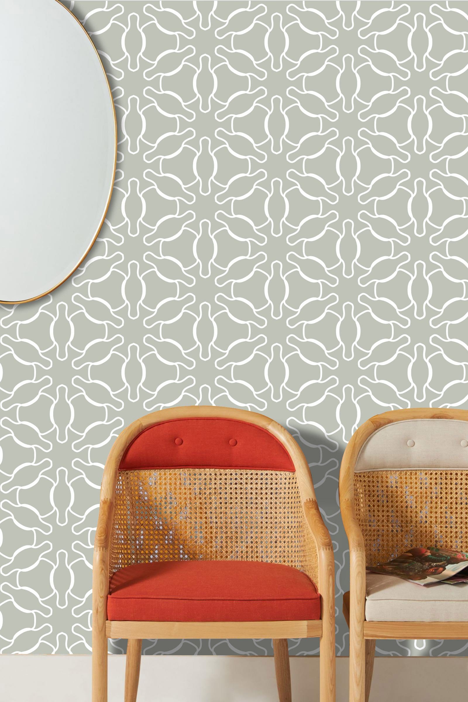 Create a wonderfully expressive look in your interior with the complex geometric flower pattern Wallpaper Mural. The overlapping shapes in white lines together make it into flower-shape pattern with pastel grey background will dominate the attention in any room, making it a great choice for a feature wall. This mural will transform your space with minimal effort.