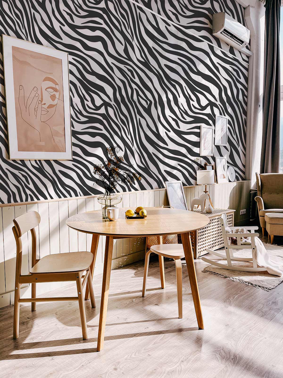 With this grey tiger skin mural, you can give your living room a striking, animal-inspired pattern. The tiger print animal fur pattern on this animal wallpaper mural is presented in the most eye-catching colour theme. This fur wall mural will turn any space into a one-of-a-kind space you'll love to spend time in thanks to its depth, dimension, and natural feel that makes it appear as though it belongs indoors.