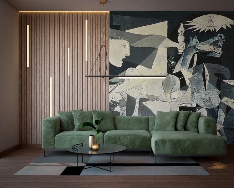 Immerse your space in a tapestry of cubist intricacy with the Guernica Wallpaper Mural. This striking design encapsulates dynamic forms and surreal landscapes, interweaving patterns and figures in a monochromatic palette. Perfect for creating a focal point in a space, this mural offers an artistic narrative that resonates with both contemporary and classic interiors.