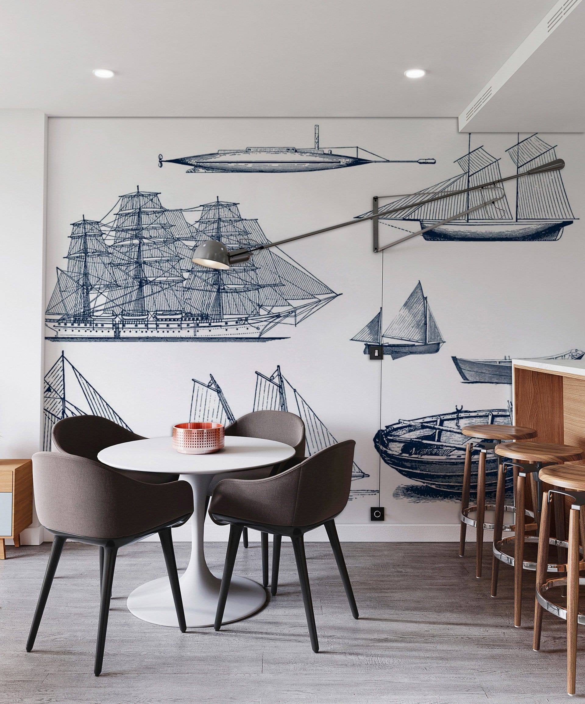 If you love sailing and sailboats, then you are going to love this wallpaper mural! This wallpaper mural is designed with numbers hand-drawn sailboats old-fashioned style, which will surely brings energy and revamp your space! Great wallpaper for your living room and bedroom for a cool and unique look.