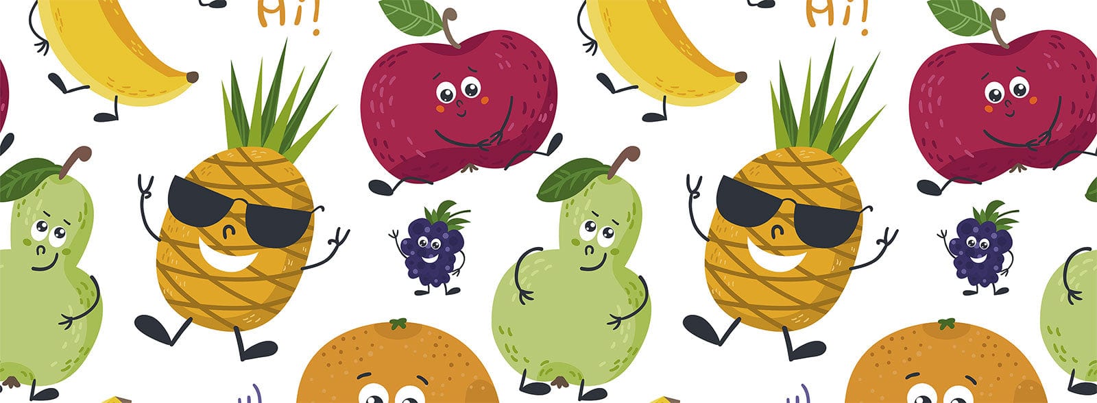 Introducing the Happy Fruits Wallpaper Mural, a delightful blend of whimsy and elegance. Featuring playful fruit characters, each with its unique expression, this mural breathes life and joy into any space. The design combines vivid colours and artistic flair to create a fun yet sophisticated atmosphere, suitable for a range of interior settings.