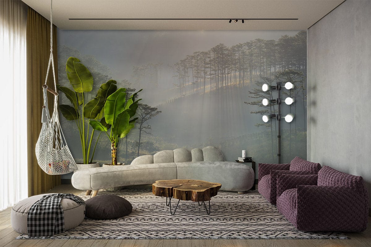 Immerse your space in the serene embrace of the Hazy Forest Wallpaper Mural. This exquisite design captures the ethereal beauty of mist-laden woods, with soft gradients of fog enveloping slender trees. The delicate interplay of light and shadow lends a sophisticated ambience, creating an inviting sanctuary in any room. Perfectly suited for diverse interiors, this mural brings a touch of natural artistry and tranquillity to your home.